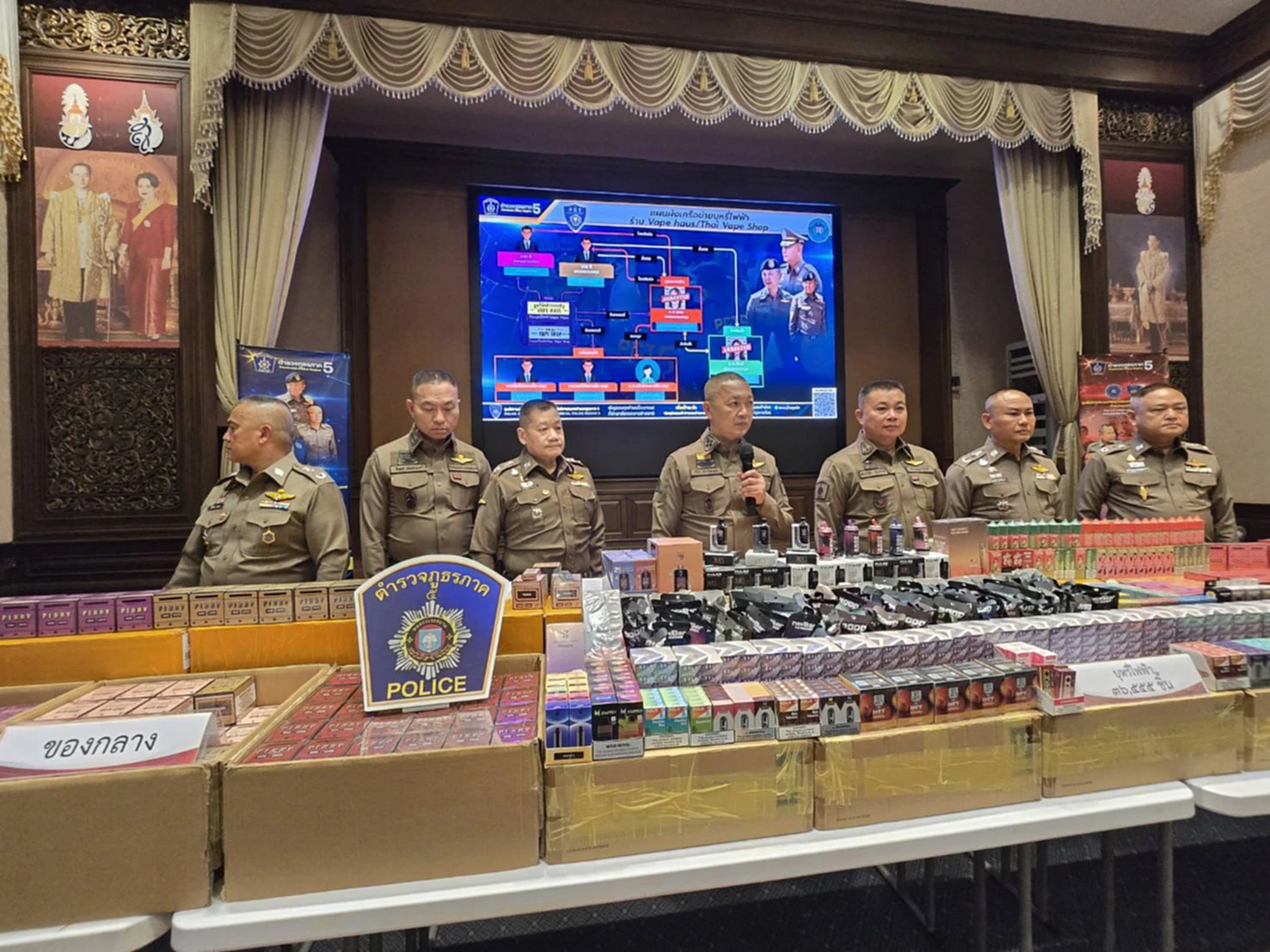 ตำรวจภูธรภาค 5 บุกค้นรังแหล่งจำหน่ายบุหรี่ไฟฟ้าออนไลน์ ส่งขายทั่วประเทศ ยึดของกลางมูลค่ากว่า 6.6 ล้าน