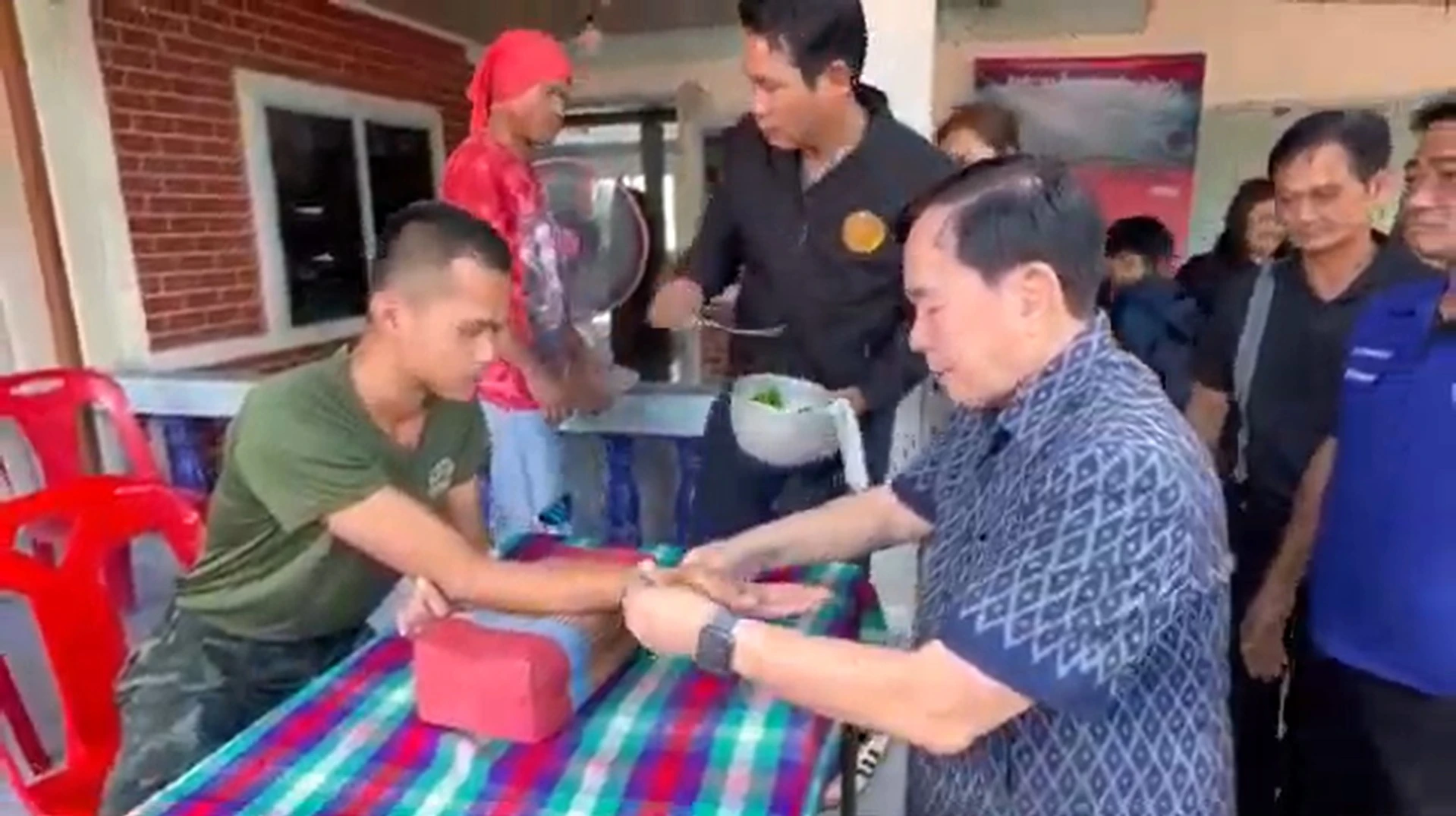 หลังได้รับรายงานว่า พลทหารอัครินท์ คำไฮ อายุ 21 ปี ทหารสังกัดกองพันทหารราบที่ 3 กรมทหารราบที่ 31 รักษาพระองค์ จ.ลพบุรี ซึ่งปฏิบัติหน้าที่ปกป้องแผ่นดินไทยอยู่ที่ ปราสาทตาควาย อ.พนมดงรัก จ.สุรินทร์ ตั้งแต่วันที่ 24 ก.ค.มาจนถึงปัจจุบัน เดินทางกลับบ้านใน ต.วังบัว อ.คลองขลุง จ.กำแพงเพชร ผู้สื่อข่าวจึงเดินทางไปที่บ้านเลขที่ 26/2 หมู่ 7 ต.วังบัว อ.คลองขลุง ซึ่งเป็นบ้านของ พลทหารอัครินท์ เมื่อเวลา 14.00 น.(28 ต.ค.68) เมื่อไปถึงพบพ่อแม่พี่น้องและชาวบ้าน รวมไปถึงผู้นำท้องถิ่น กำลังผูกแขนรับขวัญ พลทหารอัครินท์ หลังปฏิบัติหน้าที่ปกป้องชายแดนไทย-กัมพูชา ซึ่งได้รับอนุญาตใหัเดินทางกลับมาพักที่บ้านเกิดใน จ.กำแพงเพชร โดยมีหน่วยงานทุกภาคส่วนร่วมมอบสิ่งของและเงินช่วยเหลือ เพื่อสร้างขวัญและกำลังใจกับ พลทหารอัครินท์