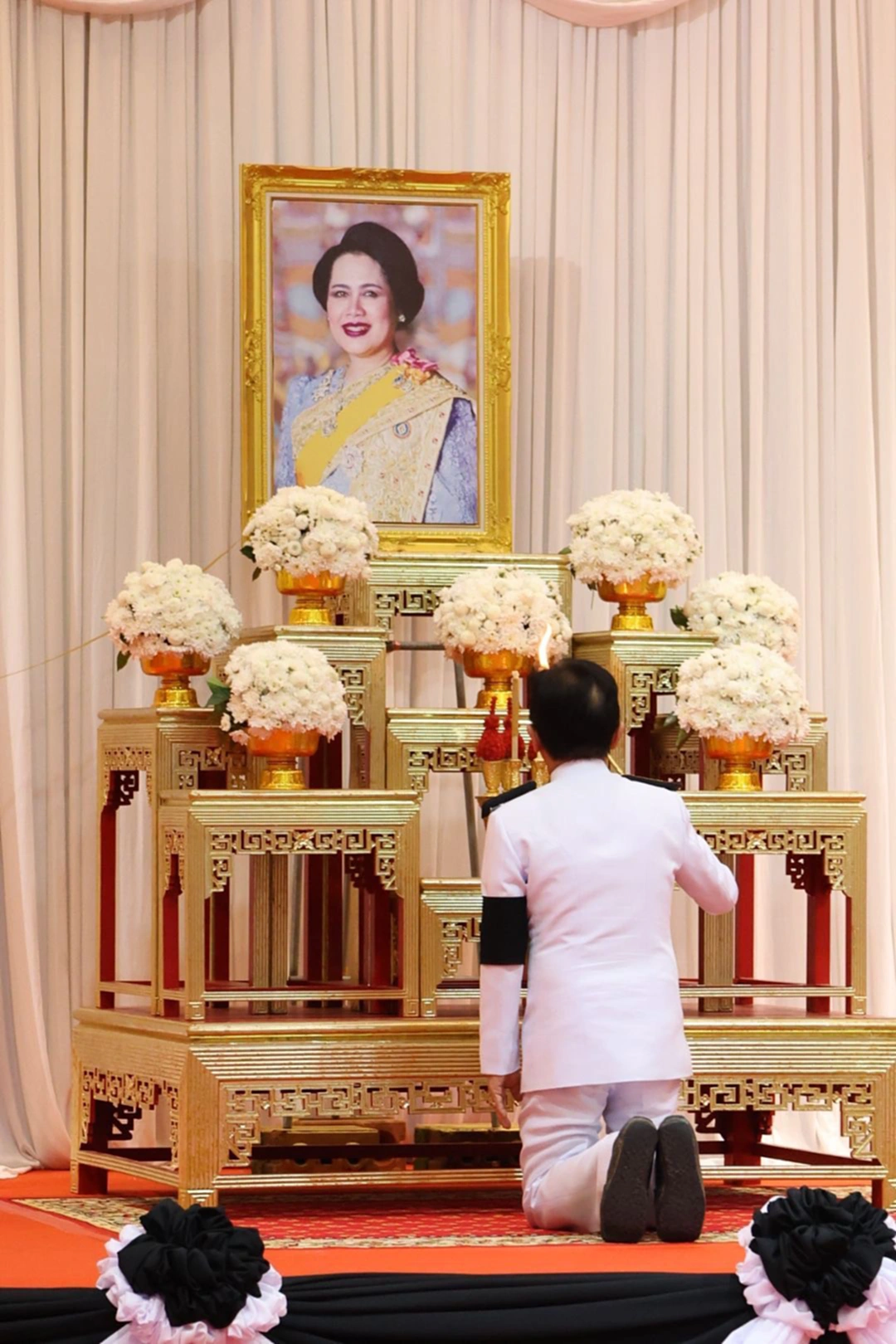 ภายในพิธี ประธานในพิธีได้จุดธูปเทียนบูชาพระรัตนตรัย จุดเครื่องทองน้อยถวายสักการะ และกราบบังคมเบื้องหน้าพระฉายาลักษณ์สมเด็จพระนางเจ้าสิริกิติ์ พระบรมราชินีนาถ พระบรมราชชนนีพันปีหลวง จากนั้นพระสงฆ์สวดพระอภิธรรม ผู้ว่าราชการจังหวัดระนอง พร้อมผู้บังคับการตำรวจภูธรจังหวัดระนอง และหัวหน้าส่วนราชการ ร่วมถวายเครื่องไทยธรรมแด่พระสงฆ์ ก่อนทอดผ้าบังสุกุล และกรวดน้ำอุทิศถวายพระราชกุศล