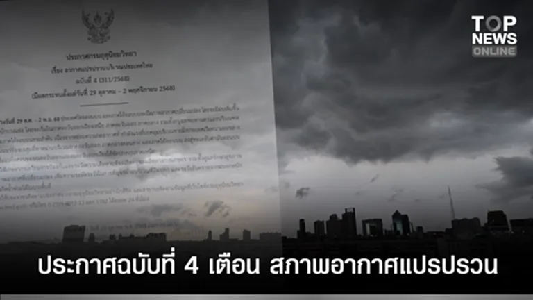 "กรมอุตุฯ" ประกาศฉบับที่ 4 เตือน อากาศแปรปรวน ฝนตกหนักบางพื้นที่ จว.ไหนเสี่ยงเช็กเลย