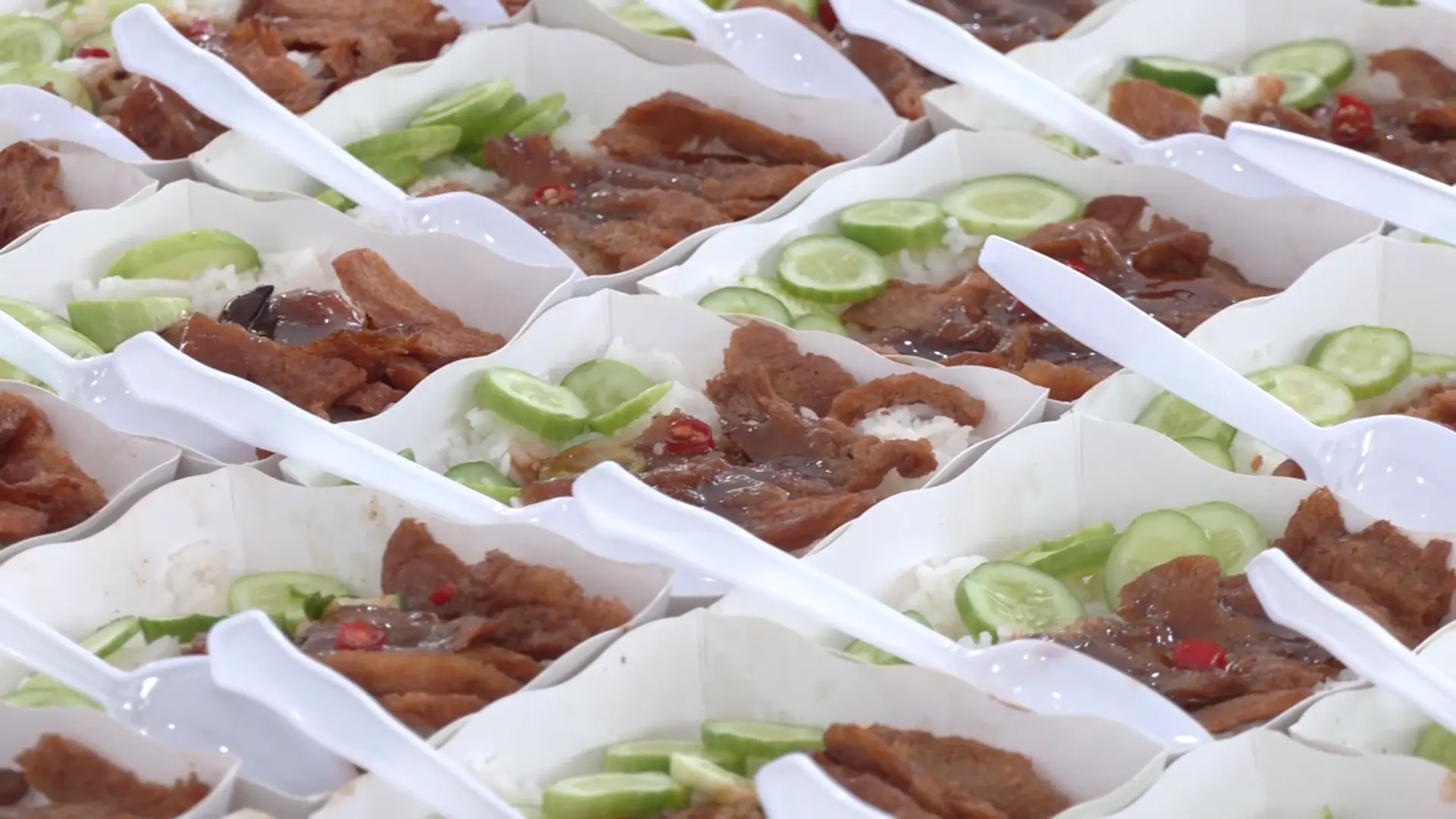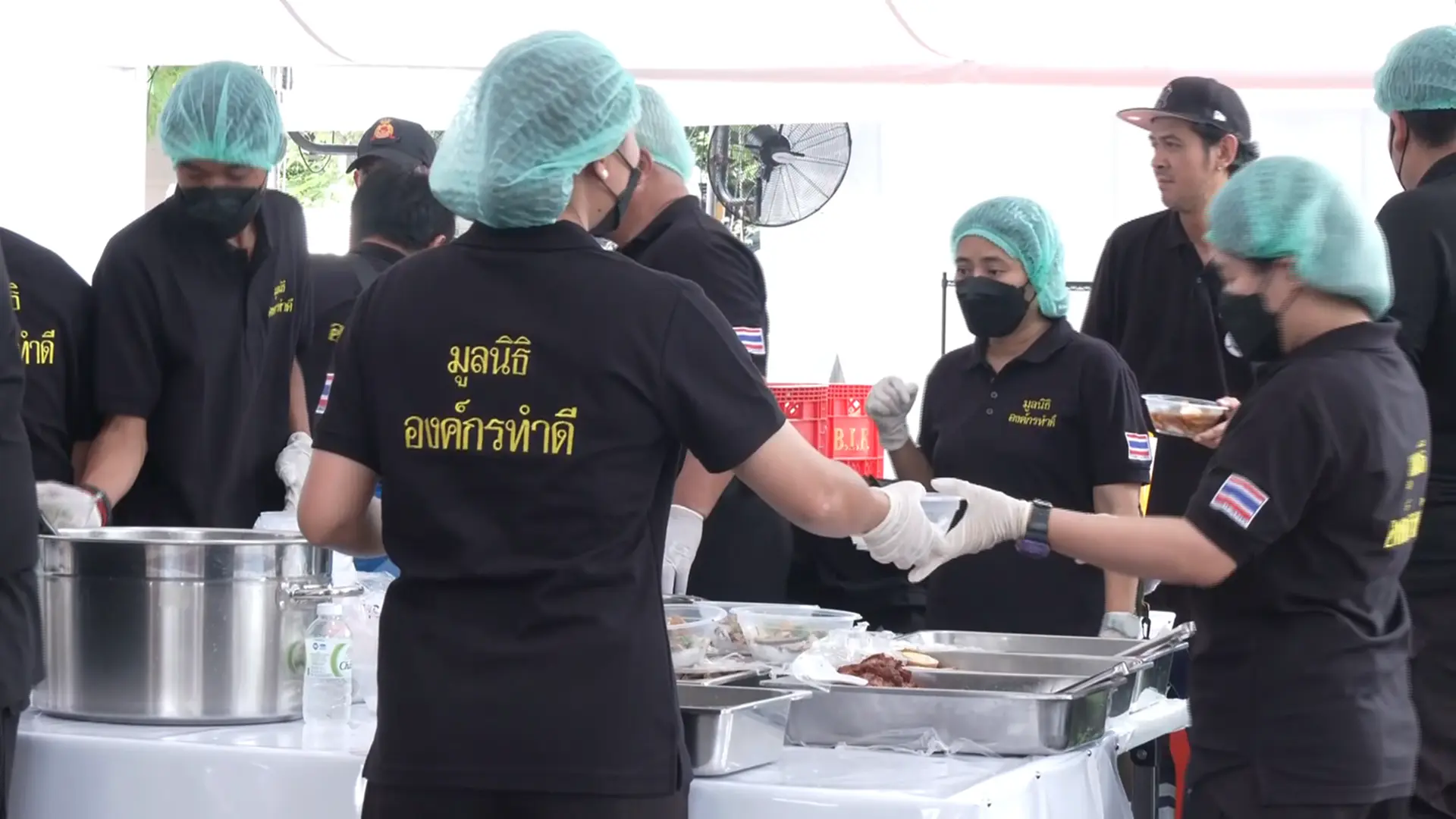 โดยมูลนิธิองค์กรทำความดี ก็จะสับเปลี่ยนเมนูอาหารไปทุกวัน เนื่องจากพี่น้อง ดารา นักแสดงหลายคน ก็อยากจะเป็นหนึ่งเดียวกันด้วย วันนี้ก็จะมี พี่เปิ้ล นาคร ที่นำขนมจีนมาให้ แล้วก็ยังมีอาหารชุดอีกมากมาย ซึ่งเราก็มีหน้าที่จัดคิวให้ อย่างวันนี้ ก็มีพี่น้องประชาชน อยากจะมาร่วมเป็นหนึ่งเดียวกัน ก็นำกล้วยหอมล็อตใหญ่ มาแจกให้กับพี่น้องประชาชนได้อย่างทั่วถึง