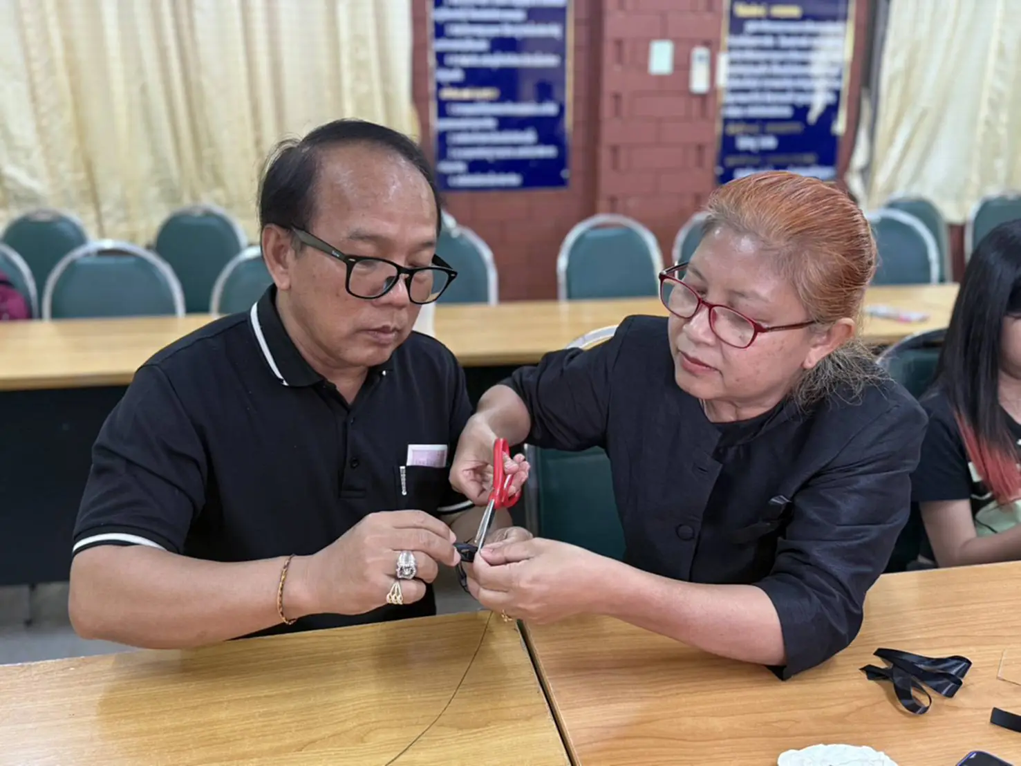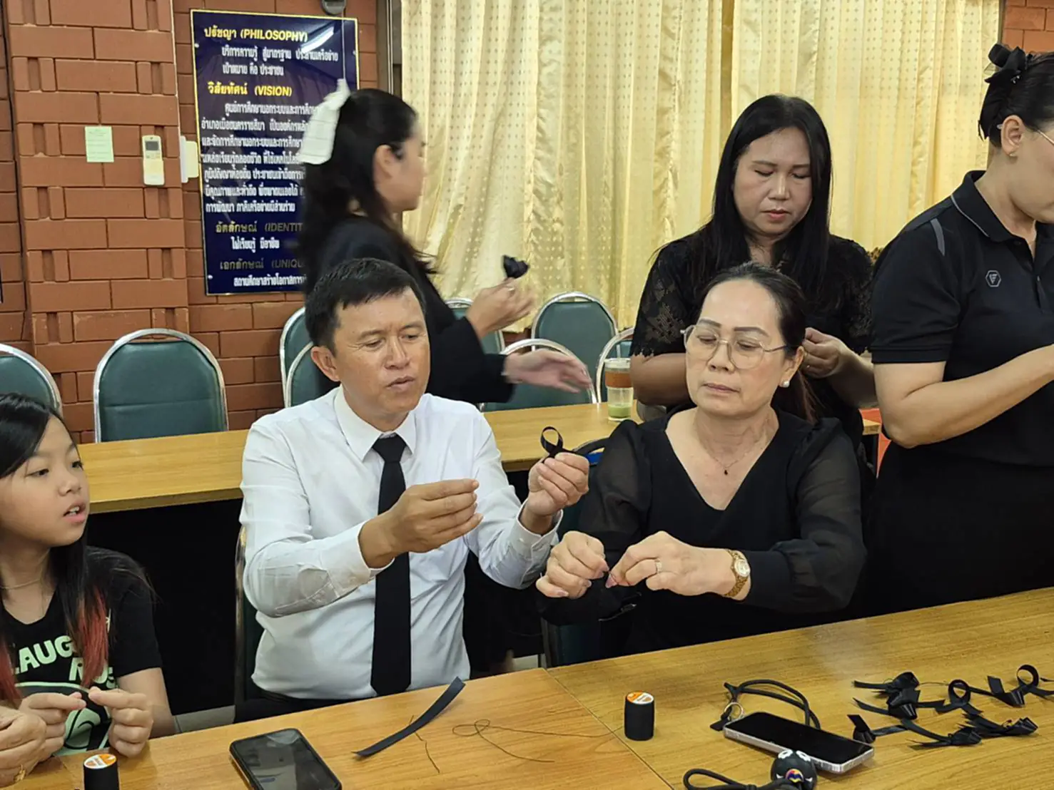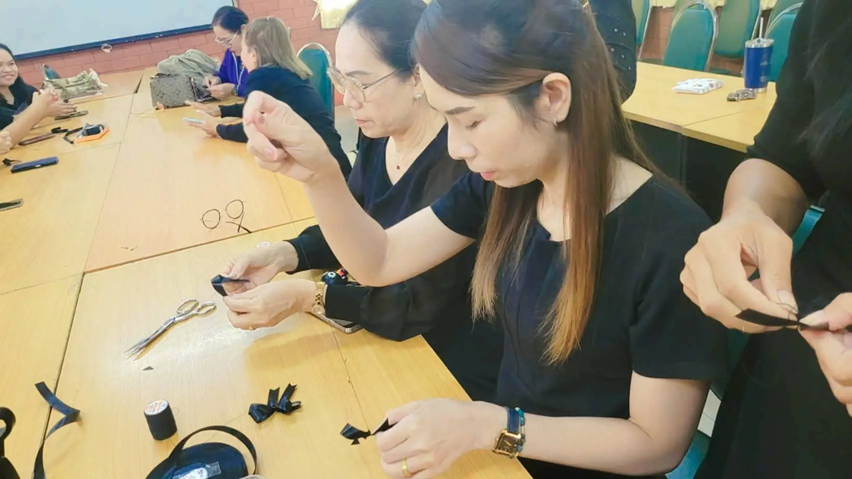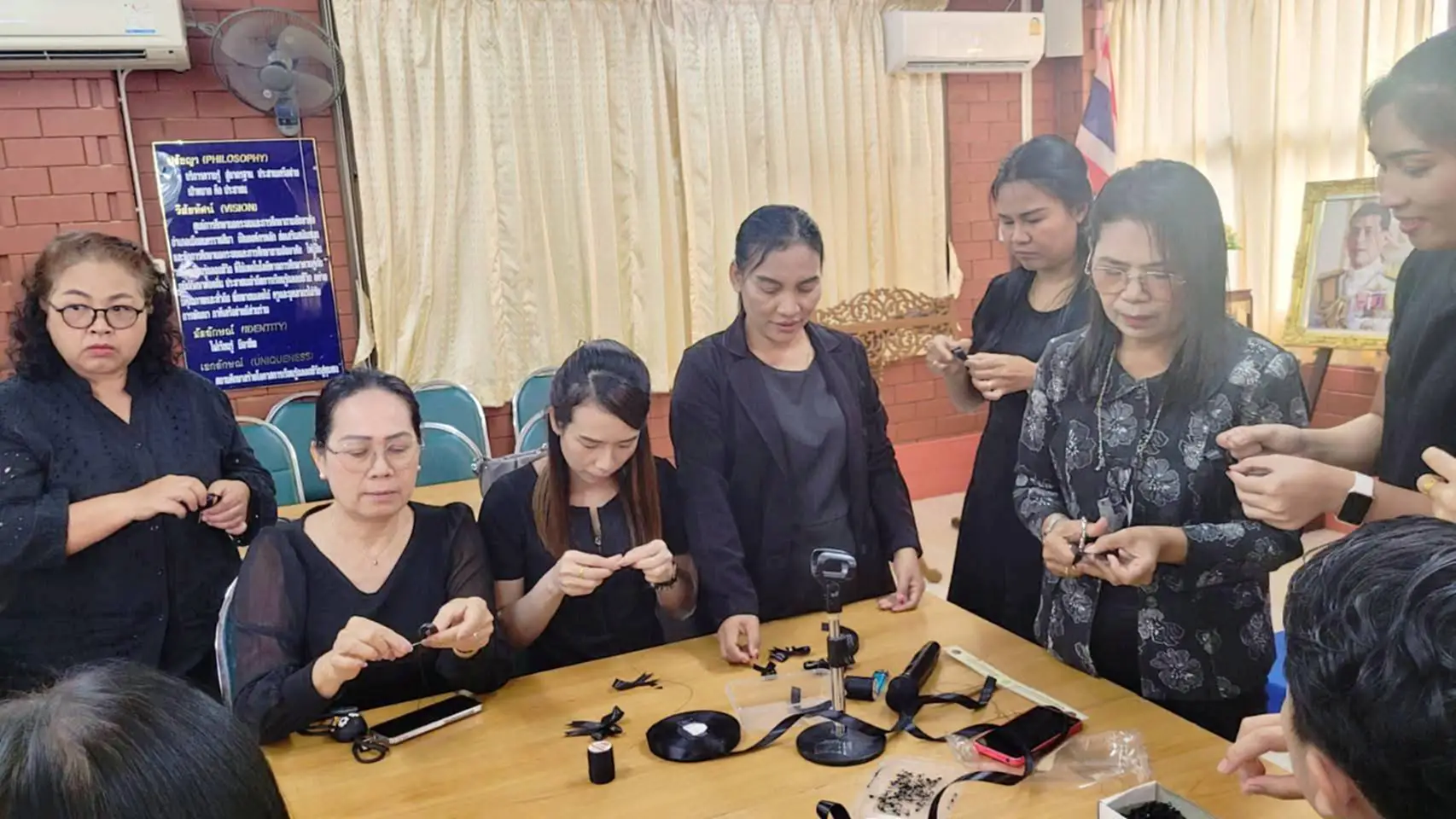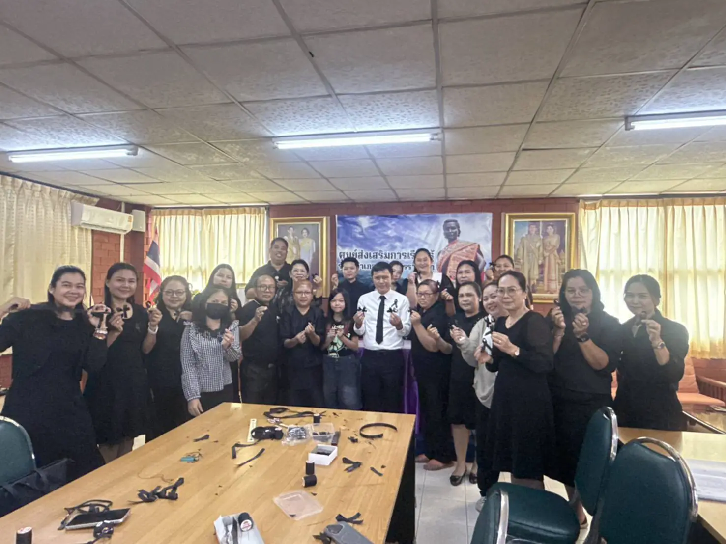 วันนี้ (29 ตุลาคม 2568) ที่ห้องประชุมศูนย์ส่งเสริมการเรียนรู้ระดับอำเภอเมืองนครราชสีมา จังหวัดนครราชสีมา นายเลอพงศ์ ทับทิมเเสน ผู้อำนวยการศูนย์ส่งเสริมการเรียนรู้ระดับอำเภอเมืองนครราชสีมา (สกร.) พร้อมด้วยคณะครู สกร.ได้ร่วมกันทำริบบิ้นสีดำเพื่อถวายความอาลัย แด่สมเด็จพระนางเจ้าสิริกิติ์ พระบรมราชินีนาถ พระบรมราชชนนีพันปีหลวง ซึ่งครู สกร.ได้ฝึกทักษะการทำริบบิ้นสีดำ โดยมีวิทยากรให้ความรู้ และฝึกสอนทำอย่างใกล้ชิด