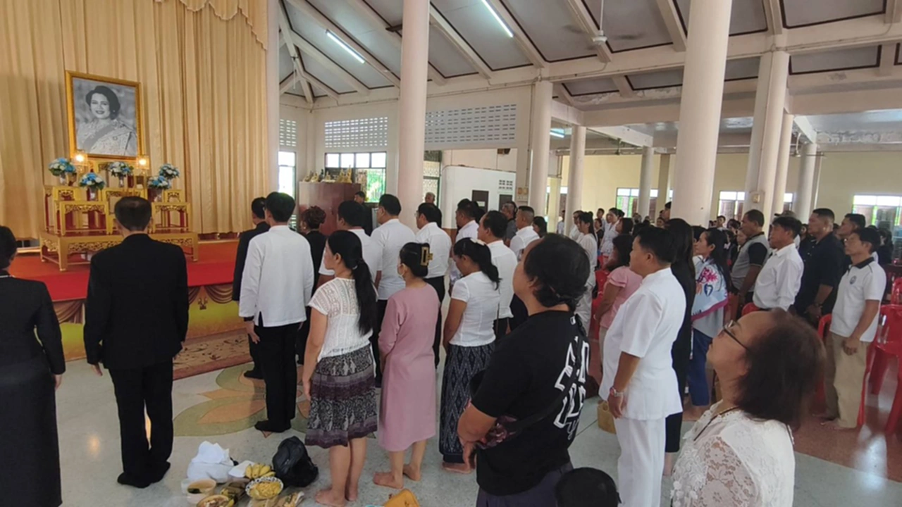 จังหวัดชลบุรี นำพสกนิกรยืนสงบนิ่งแสดงความอาลัย สมเด็จพระนางเจ้าสิริกิติ์ พระบรมราชินีนาถ พระบรมราชชนนีพันปีหลวง ในโครงการ ผู้ว่าฯ พาเข้าวัด