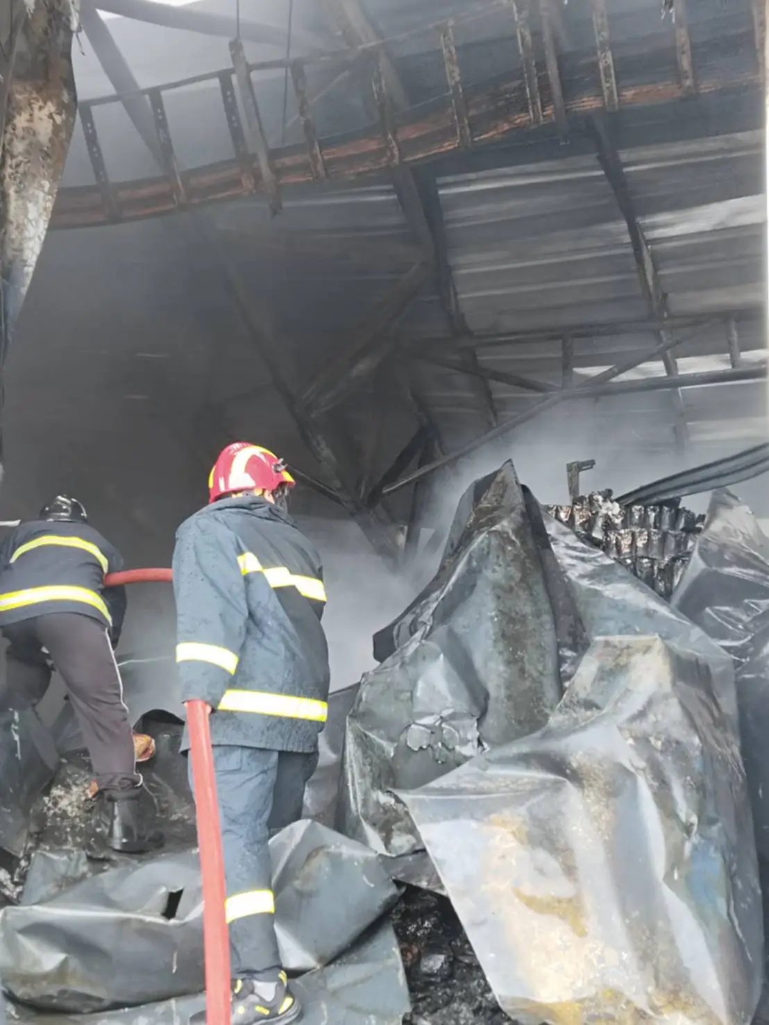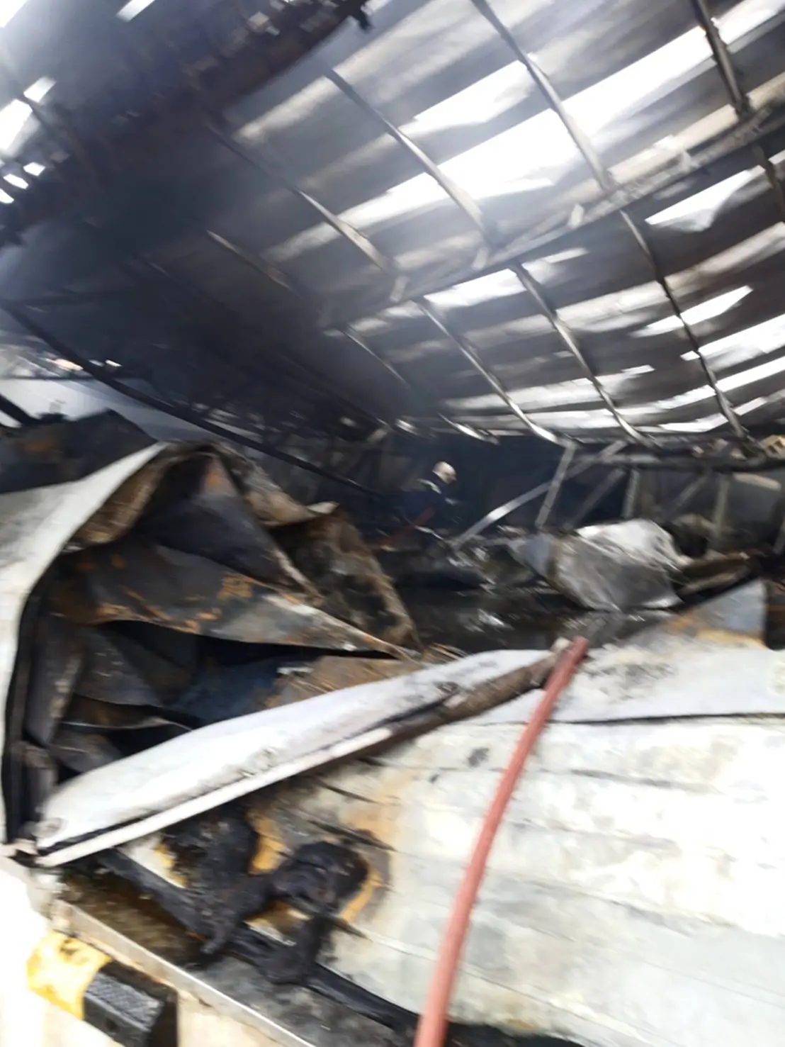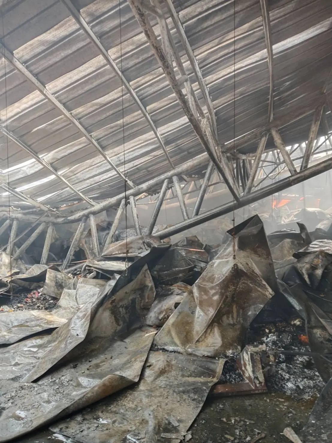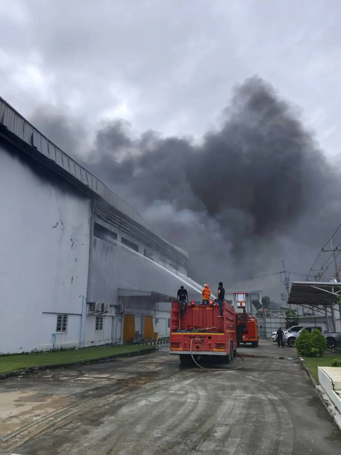 บริเวณจุดเกิดเหตุเป็นโกดังขนาดใหญ่ปลูกติดกันหลายหลัง พบกลุ่มควันสีดำพวยพุ่งออกจากอาคารด้านหลังโรงงาน ลอยปกคลุมทั่วพื้นที่ เจ้าหน้าที่ดับเพลิงระดมฉีดน้ำสกัดเพลิงจากด้านหน้าและด้านข้างเพื่อป้องกันการลุกลาม แต่ด้วยกระแสลมแรงและโครงสร้างหลังคาเหล็กถูกความร้อนสูง ทำให้บางส่วนทรุดตัวลง เจ้าหน้าที่ต้องทำงานด้วยความระมัดระวัง ใช้เวลานานกว่า 2 ชั่วโมงจึงสามารถควบคุมเพลิงไว้ได้ในวงจำกัด