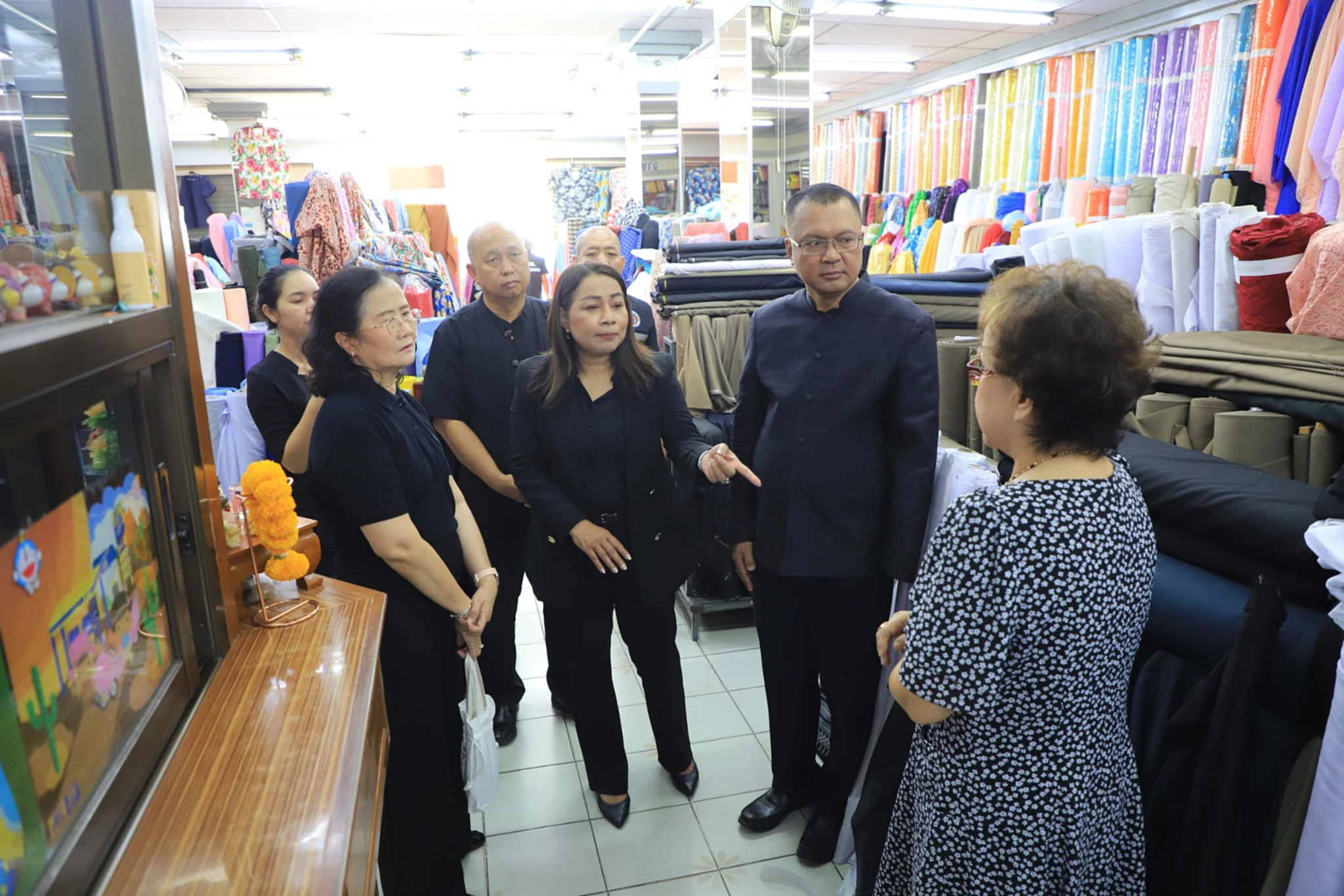 เมื่อวันที่ 29 ตุลาคม 2568 นายประยูร ศิริวรรณ รองผู้ว่าราชการจังหวัดลพบุรี นำทีม พาณิชย์จังหวัดลพบุรี ศูนย์ดำรงธรรมจังหวัดลพบุรี สำนักงานคณะอนุกรรมการคุ้มครองผู้บริโภคประจำจังหวัดลพบุรี (สคบ.) กองอำนวยการรักษาความมั่นคงภายในจังหวัดลพบุรี (กอ.รมน.) และประชาสัมพันธ์จังหวัดลพบุรี ลงพื้นที่ตรวจติดตามร้านค้าปลีกจำหน่ายชุดและเสื้อผ้าดำ ณ ตรอกเฮฟวี่ อำเภอเมือง จังหวัดลพบุรี ว่า “จากสถานการณ์ที่ประชาชนทั่วประเทศพร้อมใจร่วมถวายความอาลัยสมเด็จพระนางเจ้าสิริกิติ์ พระบรมราชินีนาถ พระบรมราชชนนีพันปีหลวง ส่งผลให้ความต้องการจัดหาชุดดำและเสื้อผ้าโทนไว้ทุกข์เพิ่มสูงขึ้นอย่างรวดเร็ว จึงได้ออกติดตามสถานการณ์ด้านราคาสินค้าอย่างใกล้ชิด เพื่อป้องกันไม่ให้มีการฉวยโอกาสขึ้นราคาหรือกักตุนสินค้า พร้อมกำชับให้ดูแลให้มีสินค้าเพียงพอและจำหน่ายในราคาที่เป็นธรรม