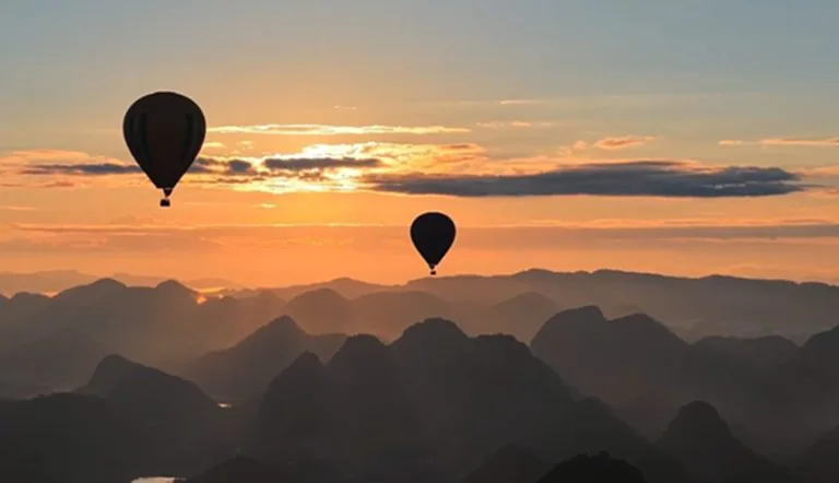 เหวินซาน, 26 ต.ค. (ซินหัว) — ปิดท้ายเราจะพาไปขึ้นบอลลูนลมร้อน ชมวิวทิวทัศน์งดงามยามแสงอาทิตย์สาดส่อง เหนือพื้นที่ชมวิวผู่เจ่อเฮย ซึ่งเป็นแหล่งท่องเที่ยวนอกกระแสที่ซ่อนตัวอยู่ในแคว้นปกครองตนเองเหวินซาน กลุ่มชาติพันธุ์จ้วงและเหมียว ในมณฑลอวิ๋นหนาน (ยูนนาน) ทางตะวันตกเฉียงใต้ของจีน