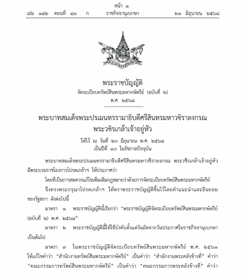 ก่อนหน้านั้นเมื่อวันที่ 22 มิถุนายน ราชกิจจานุเบกษา เผยแพร่ประกาศ พระราชบัญญัติ จัดระเบียบทรัพย์สินพระมหากษัตริย์ (ฉบับที่ 2) พ.ศ.2568
