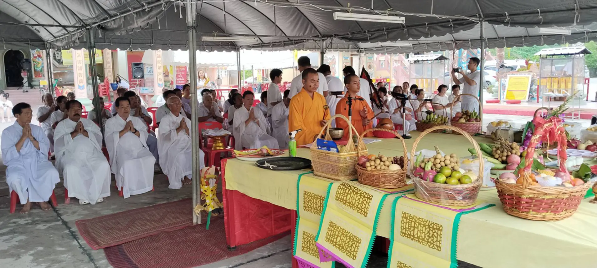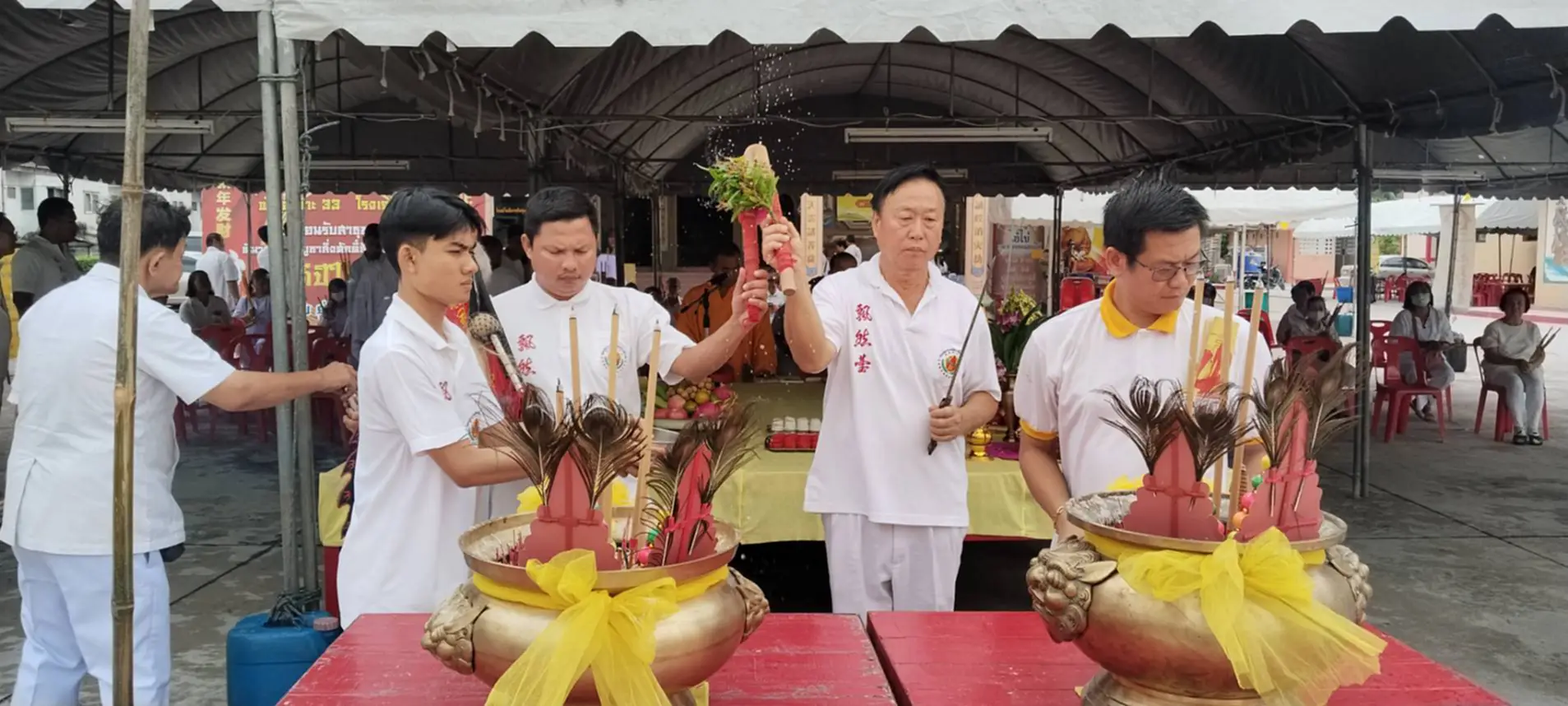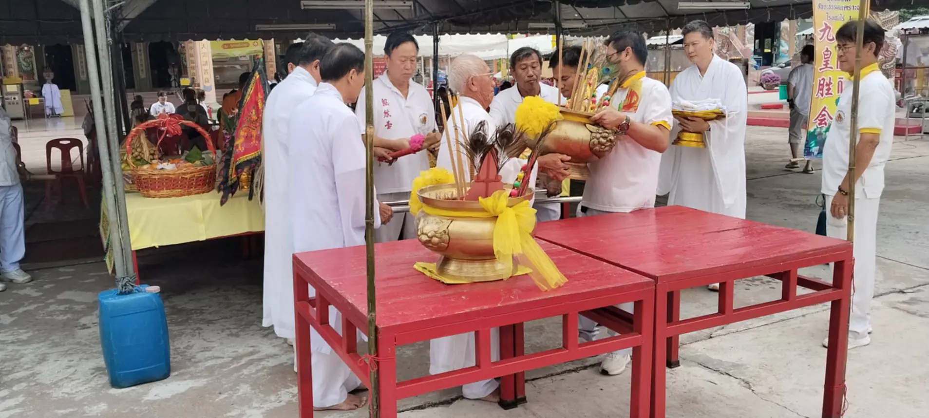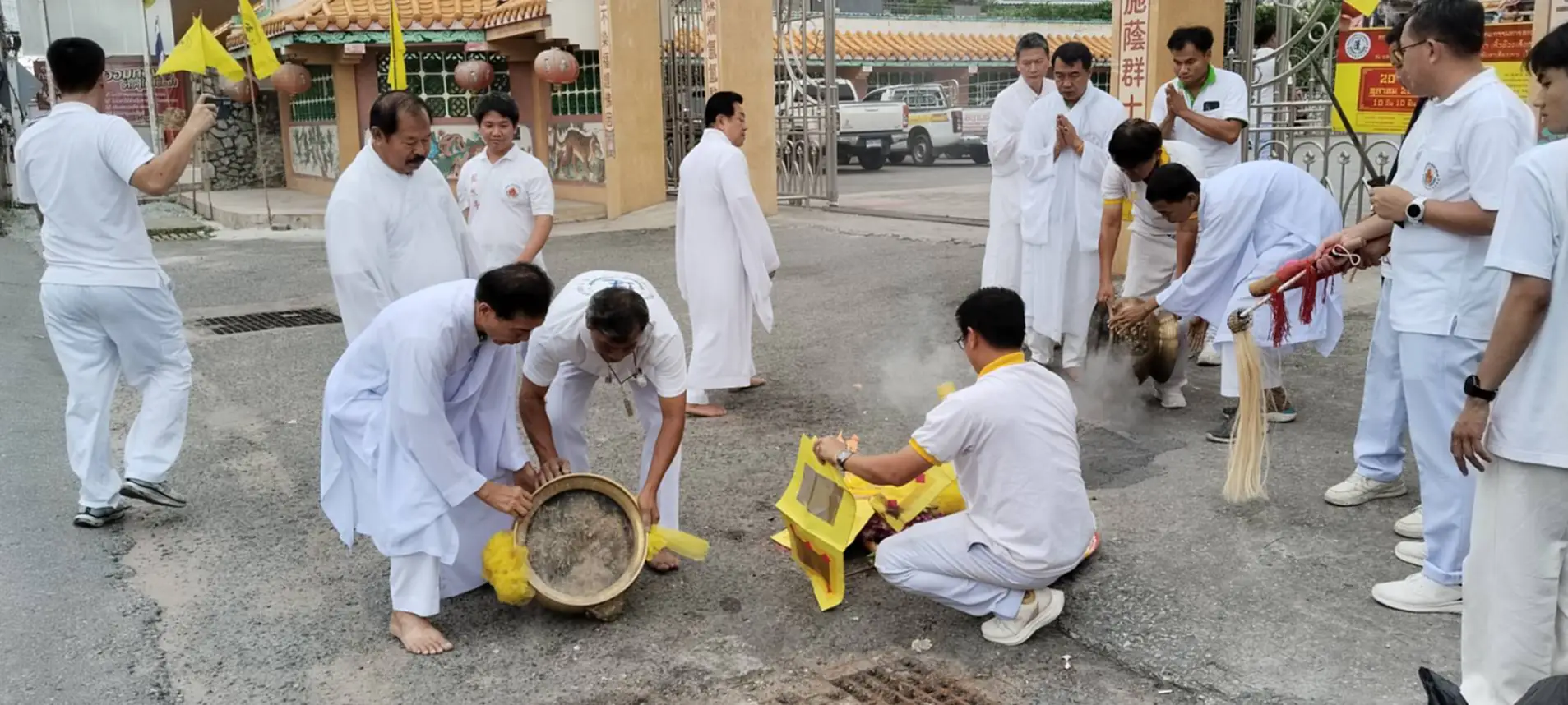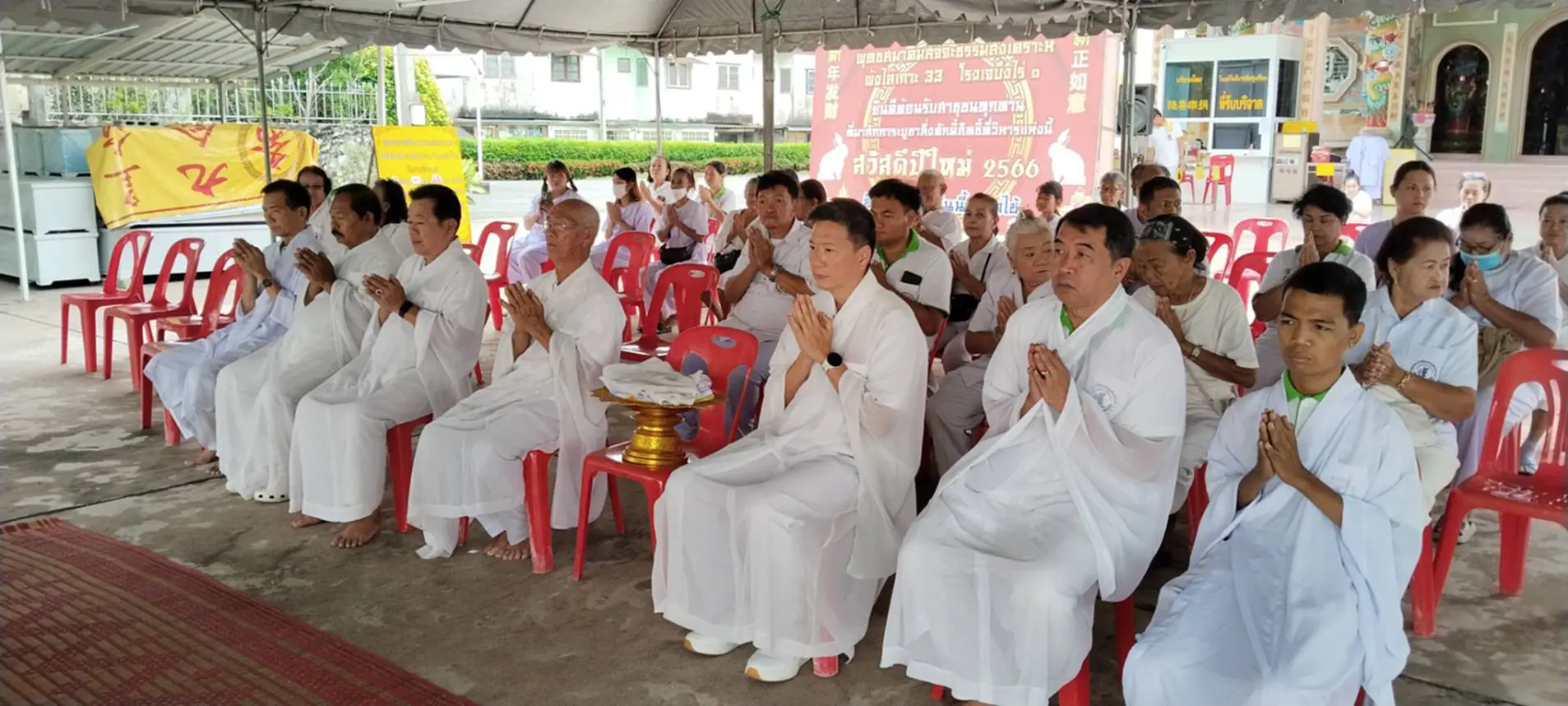 เมื่อเวลา 09.50น.( 30 ต.ค.68) ที่หน้าพุทธสมาคมสัจจะธรรมสงเคราะห์ พงไล้ซาจับซาอิกเซียวกาะโรงเจบึงไร่หนึ่ง ต.บึงอ.ศรีราชาจ.ชลบุรี นายมนตรี โสภณารมย์ อุปนายกพุทธสมาคมสัจจะธรรมะสงเคราะห์ฯ พร้อมด้วยคณะกรรมการ ร่วมกับไทยเชื้อสายจีนและผู้ที่ถือศีลกินเจในพื้นที่ตำบลบึง,ตำบลหนองขาม อำเภอศรีราชา พร้อมใจสวมชุดขาวเข้าร่วมพิธีส่งองค์เทพเจ้ากิ้วอ้วงฮุกโจ้ว กลับสรวงสวรรค์ ซึ่ง องค์เทพเจ้ากิ้วอ้วงฮุกโจ้วนั้นจะกลับสู่สรวงสวรรค์พร้อมกับรายชื่อของผู้ที่ถือศีลกินเจ เพื่อไปบันทึกไว้บนสวรรค์ ซึ่งแต่ละโรงเจนั้น จะมีรายชื่อผู้ที่ถือศีลกินเจบันทึกไว้