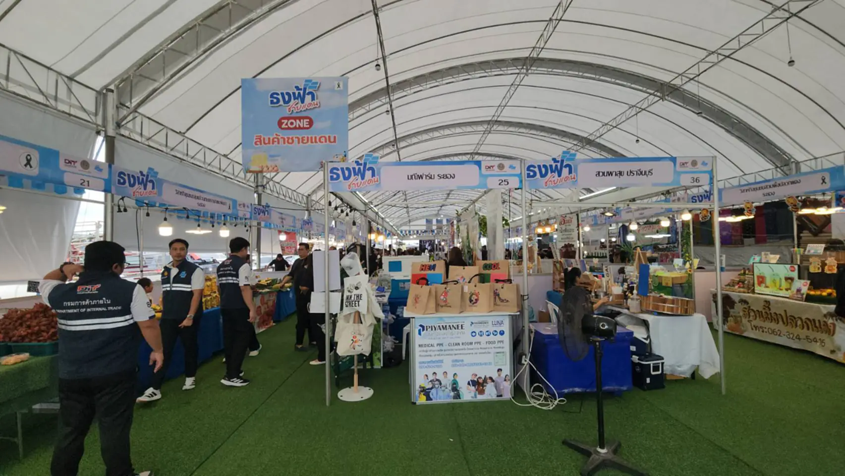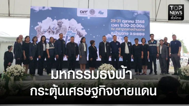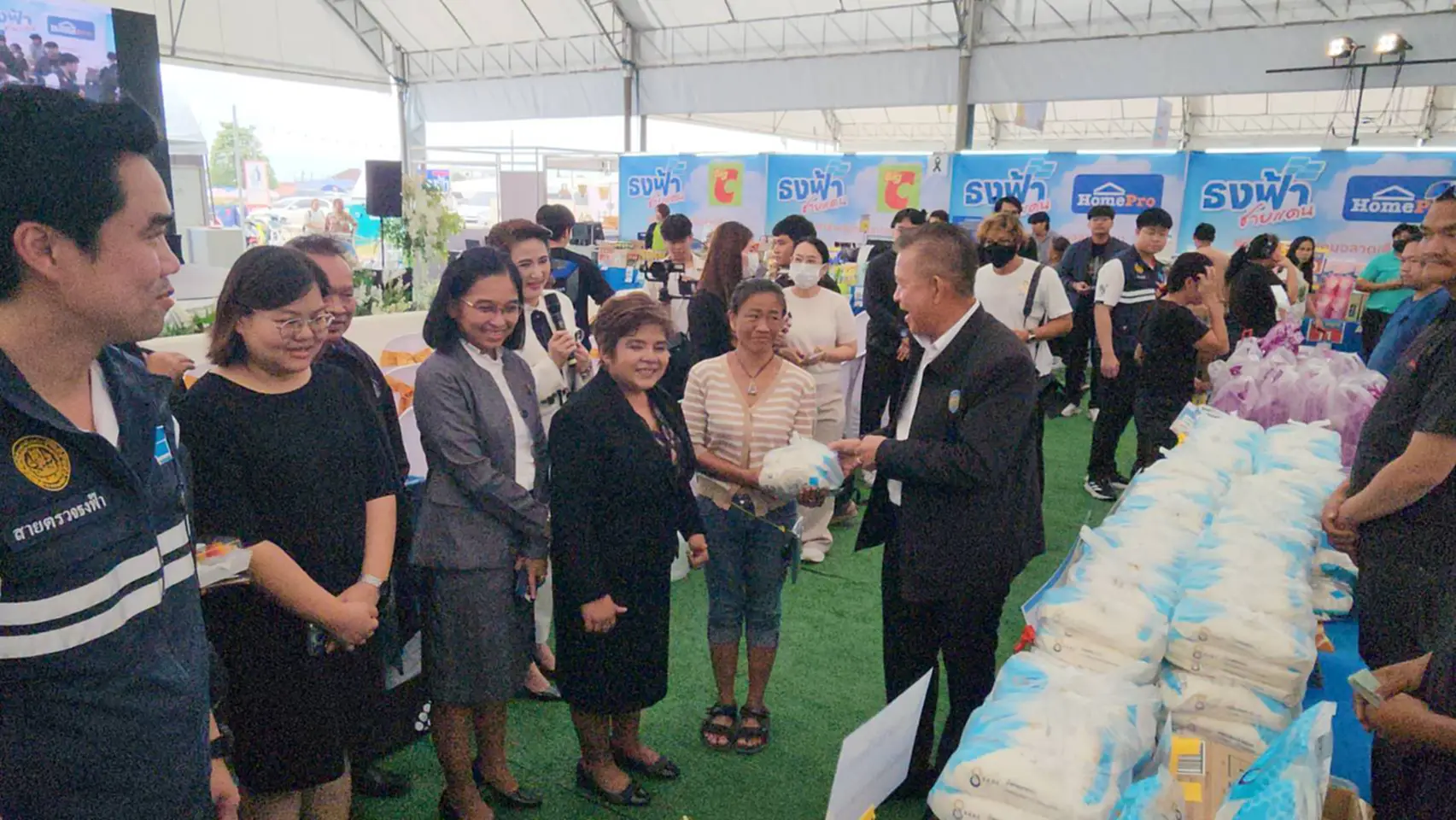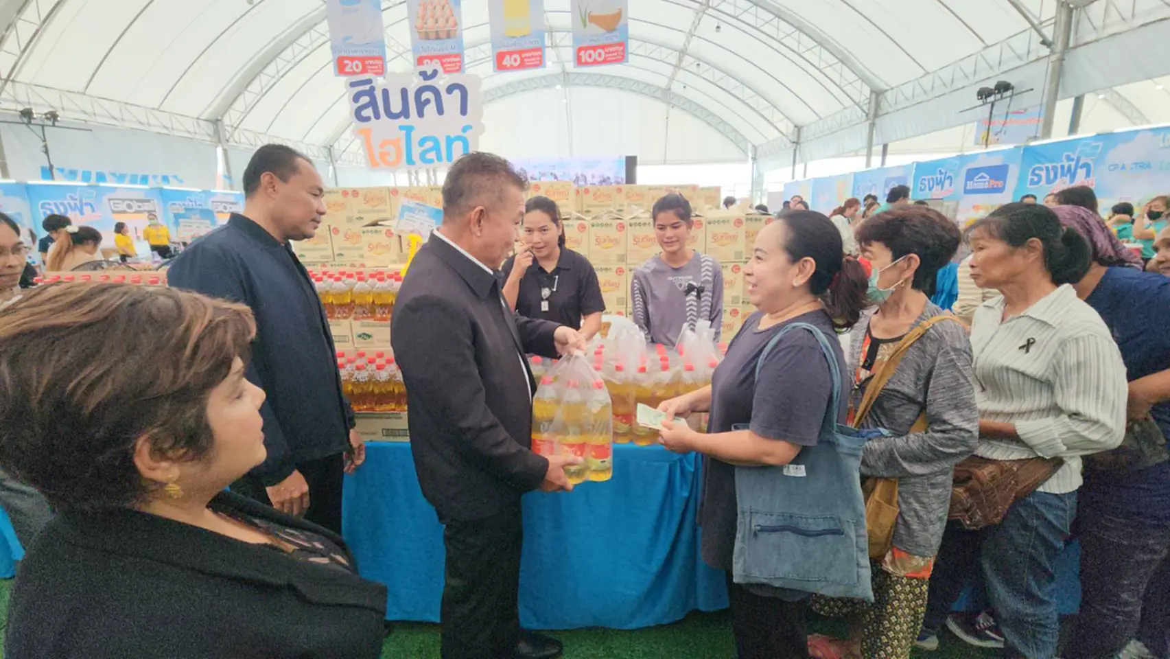 เมื่อเวลา 10.00 น. วันที่ 30 ต.ค.68 ที่บริเวณตลาดกลางบ้านฉาง อ.บ้านฉาง จ.ระยอง นายกัฬชัย เทพวรชัย รองผู้ว่าราชการจังหวัดระยอง เป็นประธานเปิดงาน ‘มหกรรมธงฟ้าเยียวยาและกระตุ้นเศรษฐกิจชายแดน จ.ระยอง’ จัดขึ้นโดยกระทรวงพาณิชย์ โดยสำนักงานพาณิชย์จังหวัดระยอง ระหว่างวันที่ 29-31 ต.ค.นี้ ภายในงานมีผู้ประกอบการ 200 ราย นำสินค้าอุปโภคบริโภคที่จำเป็นต่อค่าครองชีพมาจำหน่ายในราคาประหยัดกว่า 1,000 ราย ลดสูงสุด 60 เปอร์เซ็นต์ อาทิ น้ำมันพืช 1 ลิตร ขวดละ 40 บาท น้ำตาลทราย กก.ละ 20 บาท ไข่ไก่เบอร์ M แผงละ 80 บาท ข้าวหอมมะลิ (5 กก./ ถุง) ถุงละ 100 บาท นอกจากนี้ยังมีสินค้า GI สับปะรดทองระยอง เมนูอาหารพื้นถิ่นจากร้านอาหาร Thai select รวมทั้งสินค้าของฝากอีกด้วย