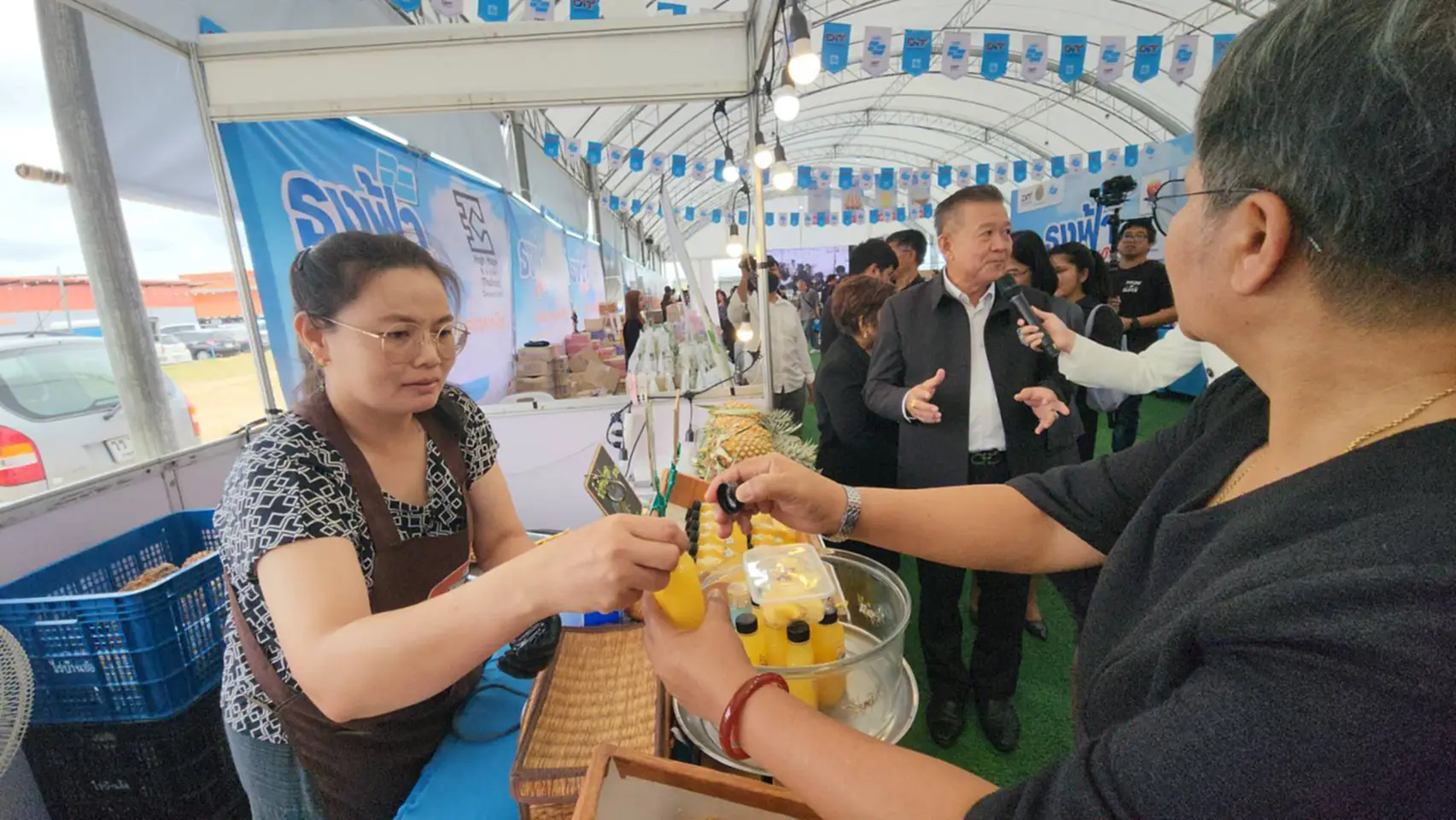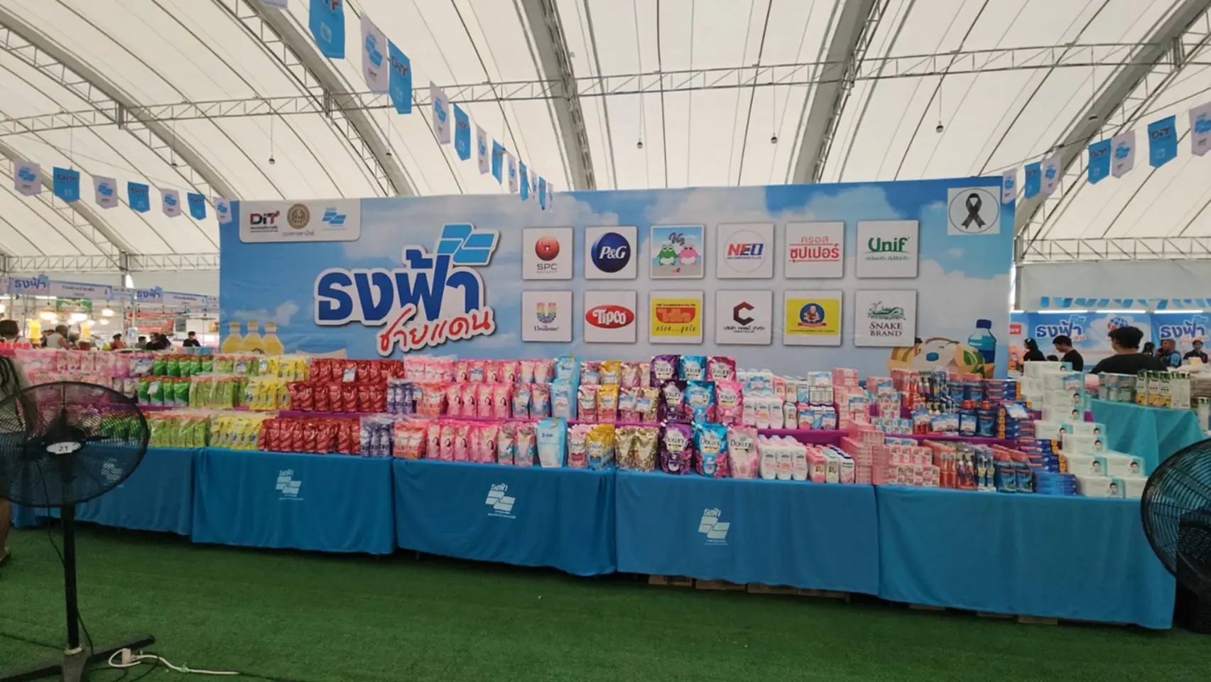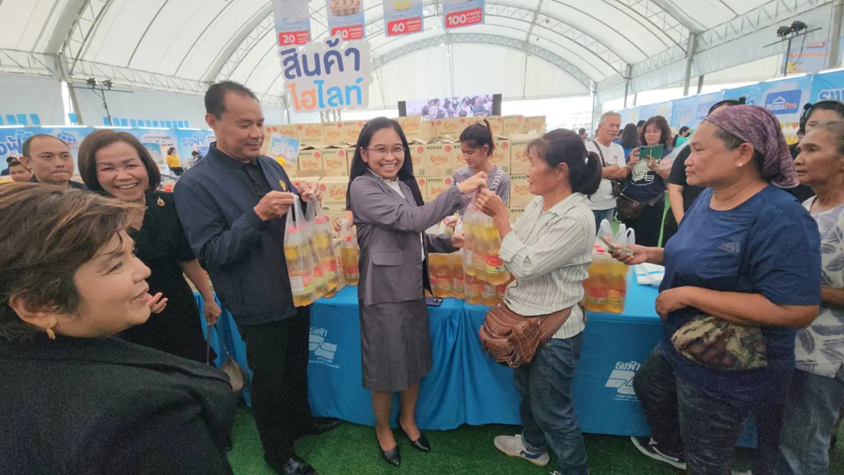 เมื่อเวลา 10.00 น. วันที่ 30 ต.ค.68 ที่บริเวณตลาดกลางบ้านฉาง อ.บ้านฉาง จ.ระยอง นายกัฬชัย เทพวรชัย รองผู้ว่าราชการจังหวัดระยอง เป็นประธานเปิดงาน ‘มหกรรมธงฟ้าเยียวยาและกระตุ้นเศรษฐกิจชายแดน จ.ระยอง’ จัดขึ้นโดยกระทรวงพาณิชย์ โดยสำนักงานพาณิชย์จังหวัดระยอง ระหว่างวันที่ 29-31 ต.ค.นี้ ภายในงานมีผู้ประกอบการ 200 ราย นำสินค้าอุปโภคบริโภคที่จำเป็นต่อค่าครองชีพมาจำหน่ายในราคาประหยัดกว่า 1,000 ราย ลดสูงสุด 60 เปอร์เซ็นต์ อาทิ น้ำมันพืช 1 ลิตร ขวดละ 40 บาท น้ำตาลทราย กก.ละ 20 บาท ไข่ไก่เบอร์ M แผงละ 80 บาท ข้าวหอมมะลิ (5 กก./ ถุง) ถุงละ 100 บาท นอกจากนี้ยังมีสินค้า GI สับปะรดทองระยอง เมนูอาหารพื้นถิ่นจากร้านอาหาร Thai select รวมทั้งสินค้าของฝากอีกด้วย