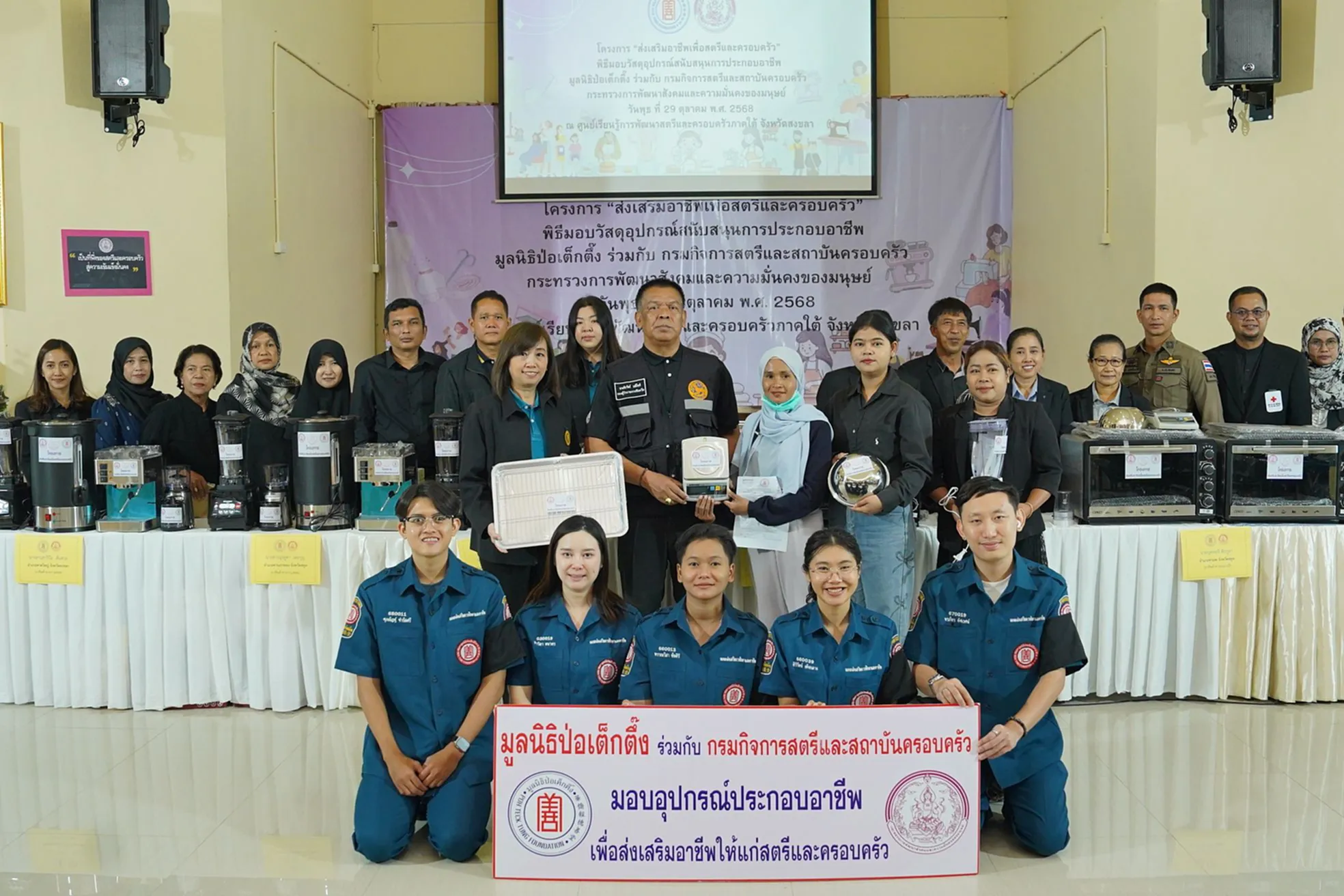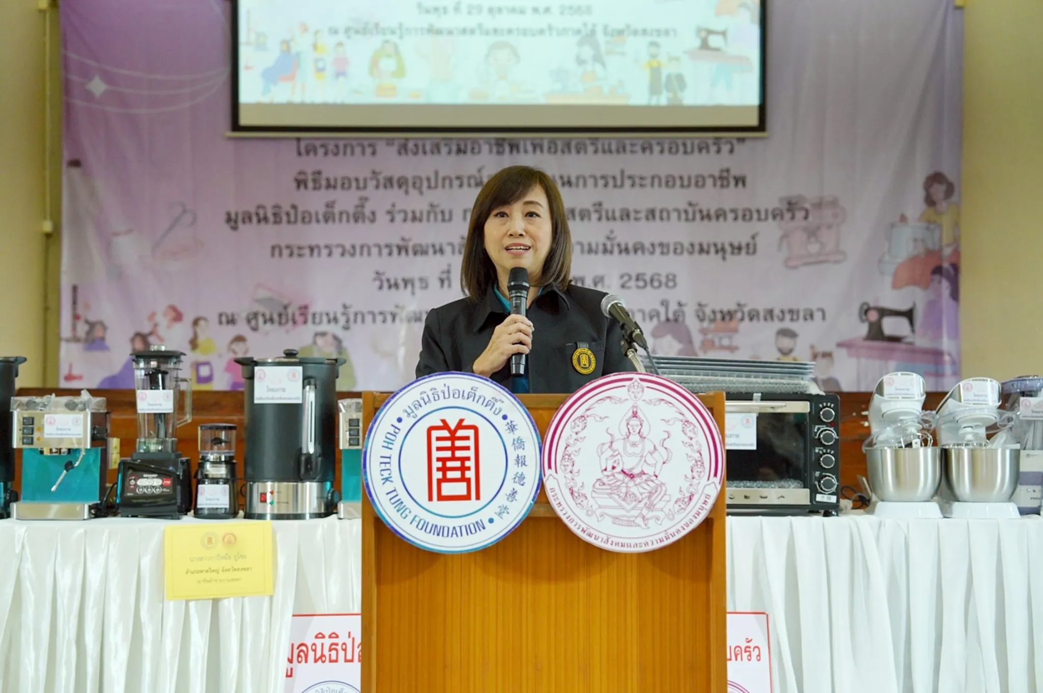 เมื่อวันที่ 29 ตุลาคม 2568 มูลนิธิป่อเต็กตึ๊ง นำโดย นางศิริพร กระจ่างหล้า ผู้จัดการฝ่ายสังคมสงเคราะห์ พร้อมด้วย นางสาวศุภรัตน์ สมบัติเจริญไทย หัวหน้าแผนกส่งเสริมการศึกษาและอาชีพ และนางสาวเนาวรัตน์ วรรณศิริ หัวหน้าแผนกหน่วยแพทย์สงเคราะห์ชุมชน นำทีมลงพื้นที่มอบวัสดุอุปกรณ์ประกอบอาชีพแก่สตรี บุรุษ พ่อเลี้ยงเดี่ยว หรือผู้ที่มีความหลากหลายทางเพศ ในพื้นที่จังหวัดสงขลา ที่มีความรู้และความสามารถ ฐานะยากจน ขาดแคลนวัสดุอุปกรณ์ในการประกอบอาชีพ จำนวน 23 ราย คิดเป็นมูลค่า 455,950 บาท พร้อมรถเข็นวีลแชร์ มามอบให้แก่ผู้พิการ จำนวน 15 ราย คิดเป็นมูลค่าทั้งสิ้น 45,000 บาท รวมมูลค่าการช่วยเหลือในครั้งนี้เป็นเงินทั้งสิ้น 500,950 บาท (ห้าแสนเก้าร้อยห้าสิบบาทถ้วน)