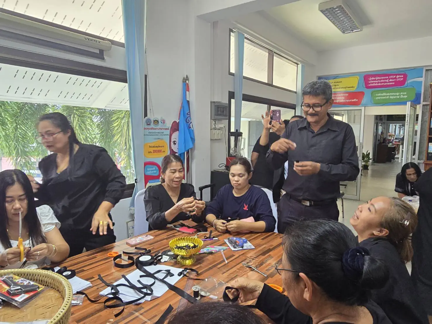 วันที่ 30 ต.ค. 2568 นายสุกิจ มีพริ้ง นายอำเภอท่าฉาง นำบุคลากร พร้อมด้วย เจ้าหน้าที่พัฒนาชุมชนอำเภอท่าฉาง เครือข่ายสตรีอำเภอท่าฉาง และเครือข่ายผู้นำอาสาพัฒนาชุมชนอำเภอท่าฉาง ร่วมใจจัดทำโบว์ริบบิ้นสีดำ เพื่อนำไปแจกจ่ายกับประชาชนผู้มาใช้บริการที่ยังไม่มีเสื้อสีดำ และประชาชนในพื้นที่ ได้ร่วมถวายความอาลัยสมเด็จพระนางเจ้าสิริกิติ์พระบรมราชินีนาถ พระบรมราชชนนีพันปีหลวง ด้วยหัวใจเดียวกัน