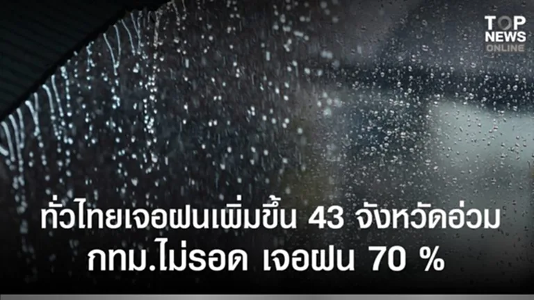 สภาพอากาศวันนี้ อุตุฯเตือนทั่วไทยเจอฝนเพิ่มขึ้น 43 จังหวัดอ่วม ตกหนัก กทม.ไม่รอด เจอฝน 70 %