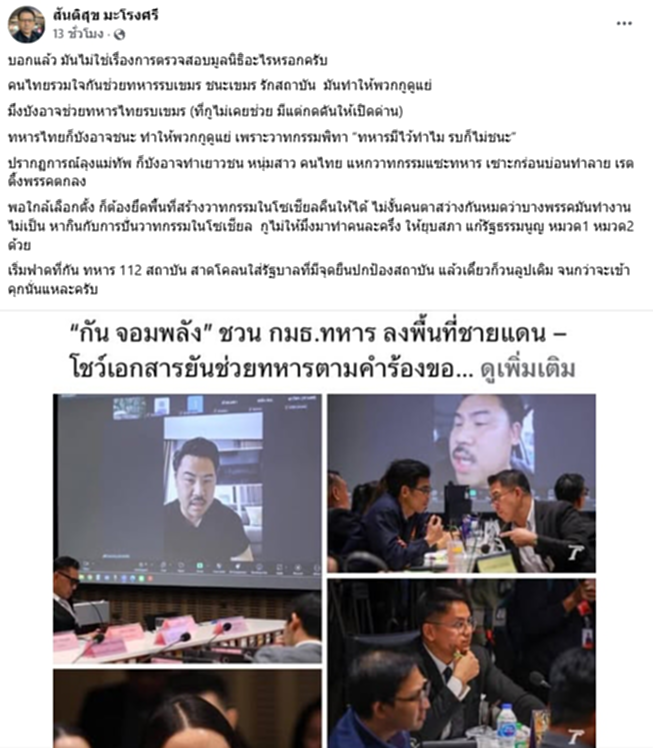 "สันติสุข" จวกเดือดขบวนการบ่อนแซะทหาร รัฐบาล ยึดมั่นสถาบันฯ ขยายภาพย้ำหัวโจกเบื้องหลัง "ศาลปกครอง" ยกฟ้องเรียงหน้าก๊วน 3 นิ้ว เอาผิดกล่าวหากองทัพทำ IO ปล่อยเฟกนิวส์