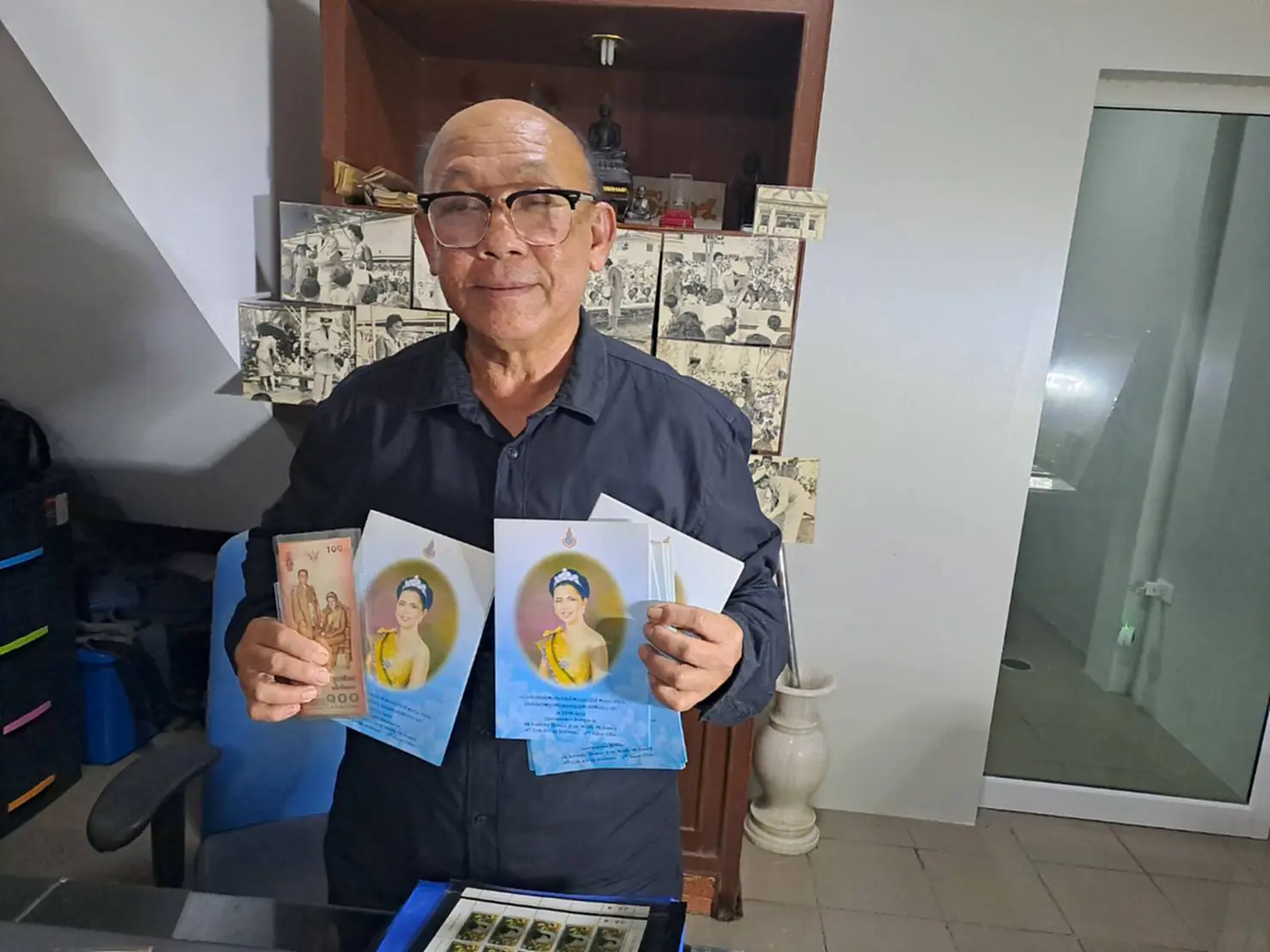 วันที่ 30 ต.ค. 2568 ที่จังหวัดสุราษฎร์ธานี นายธิติ พานวัน หรือ “อาจารย์ธิติ พานวัน” อายุ 63 ปี ข้าราชการบำนาญ อดีตอาจารย์คณะมนุษยศาสตร์และสังคมศาสตร์ มหาวิทยาลัยราชภัฏสุราษฎร์ธานี เปิดเผยถึงแรงบันดาลใจในการสะสมพระบรมฉายาลักษณ์และแสตมป์ที่เกี่ยวข้องกับสมเด็จพระนางเจ้าสิริกิติ์ พระบรมราชินีนาถ พระบรมราชชนนีพันปีหลวง ตลอดจนพระบรมฉายาลักษณ์ในหลวงรัชกาลที่ 9 ที่ทรงเสด็จพระราชดำเนินคู่กันไปทั่วประเทศ โดยเฉพาะในพื้นที่ภาคใต้ รวมถึงจังหวัดสุราษฎร์ธานี