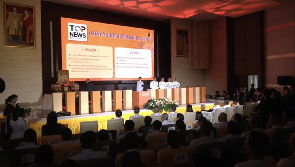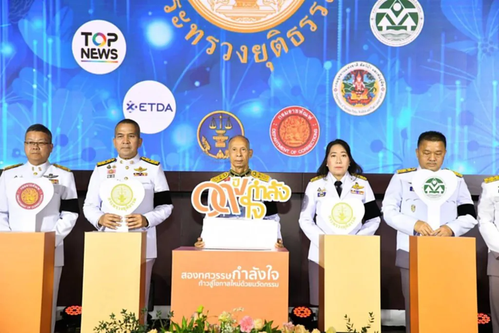 นายโกมล พรมเพ็ง รองปลัดกระทรวงยุติธรรม นายธนัตถ์ ศรมณี กรรมการ บริษัท ท็อปนิวส์ ดิจิตัล มีเดีย จำกัด นายเอกชัย ชัยเชิดชูกิจ รองกรรมการผู้จัดการบริษัท ท็อปนิวส์ ดิจิตัล มีเดีย จำกัด และ สื่อมวลชน แขกผู้มีเกียติเข้าร่วมฯ ณ ห้องประชุมสนฉัตร ชั้น 3 อาคารกระทรวงยุติธรรม