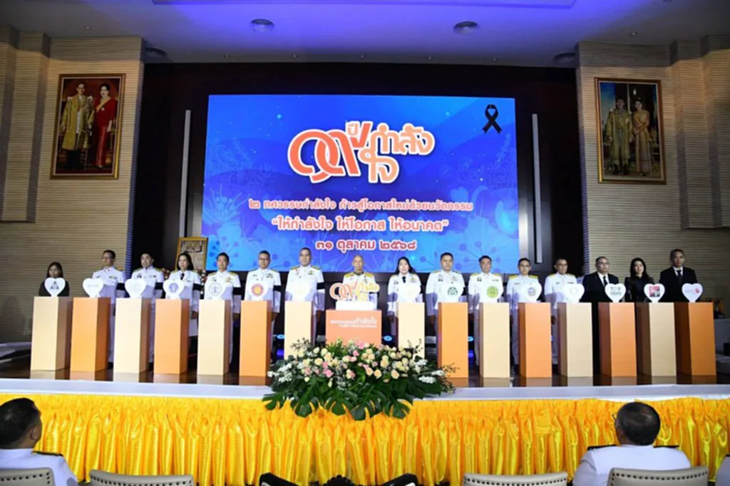 โดยมี พลตํารวจโท รุทธพล เนาวรัตน์ รัฐมนตรีว่าการกระทรวงยุติธรรม กล่าวให้การสนับสนุนการดําเนินงานตามโครงการกําลังใจฯ ด้านนางพงษ์สวาท นีละโยธิน ปลัดกระทรวงยุติธรรม