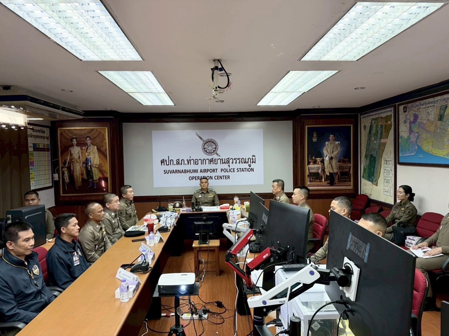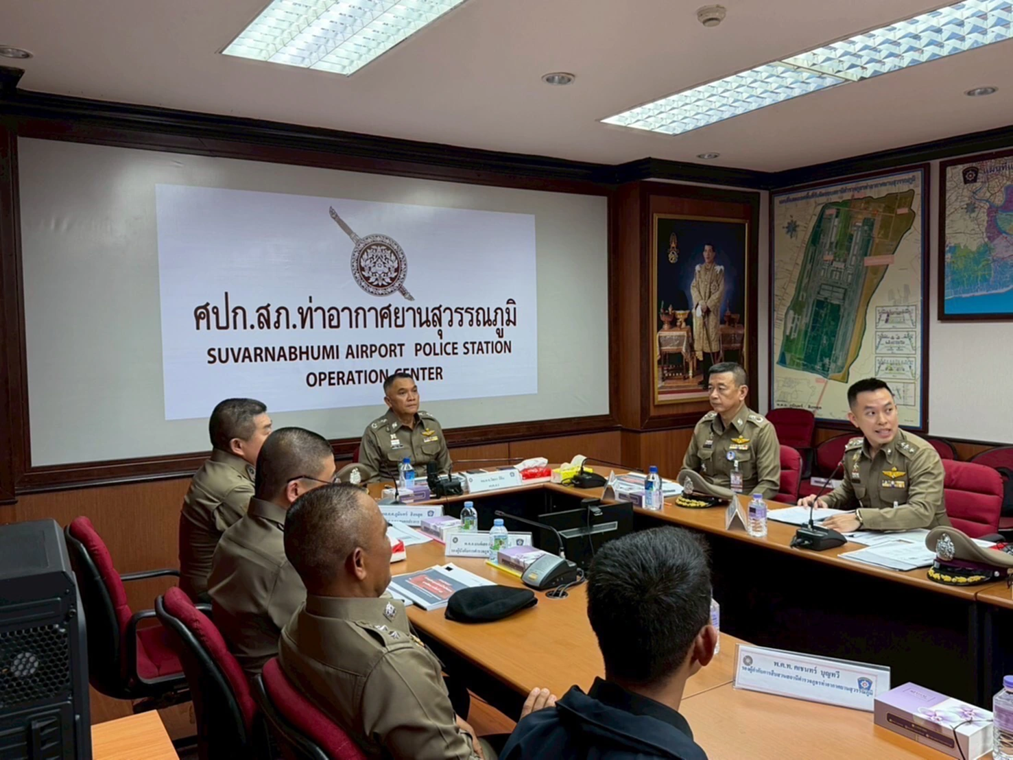 โดยมี พล.ต.ต.ภูมินทร์ สิงหสุด ผบก.ภ.จว.สมุทรปราการ พร้อมด้วย พ.ต.อ.มนต์เสก ตระกูลพานิชย์ รอง ผบก.ภ.จว.สมุทรปราการ ร่วมเดินทางมาตรวจเยี่ยม ณ สภ.ท่าอากาศยานสุวรรณภูมิ จ.สมุทรปราการ ณ ห้องรับรองพิเศษท่าอากาศยานสุวรรณภูมิ โดยมี พ.ต.อ.ทองรชฎ เหรียญสุวงษ์ ผกก.สภ.ท่าอากาศยานสุวรรณภูมิ พร้อมด้วยข้าราชการตำรวจ สภ.ท่าอากาศยานสุวรรณภูมิ ให้การต้อนรับ