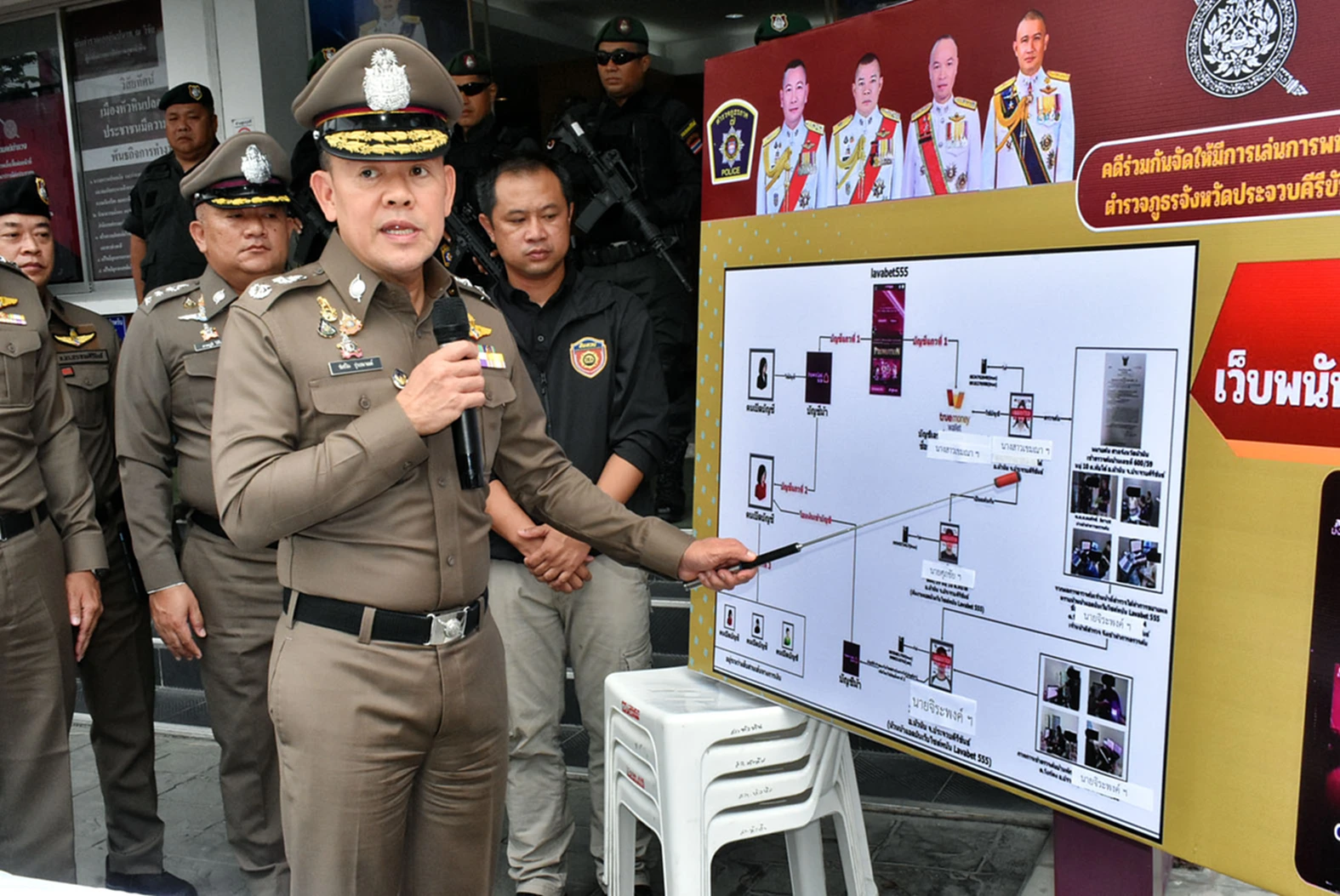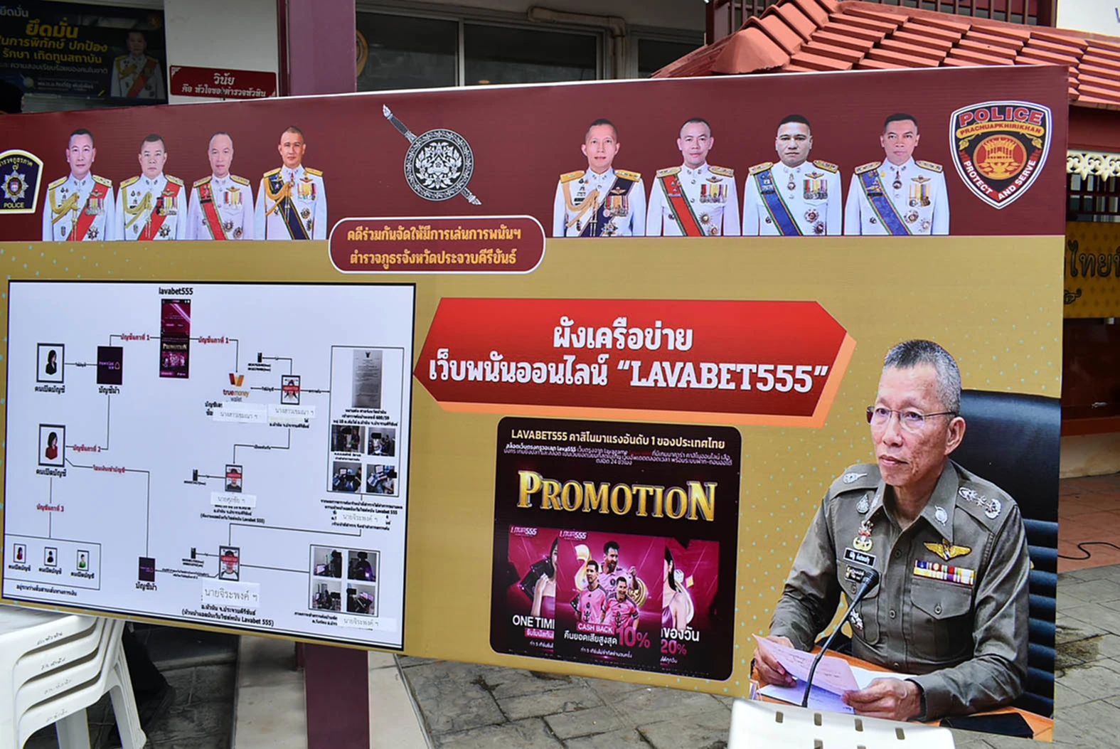 พล.ต.ต.ชมชวิณ ปุระธนานนท์ กล่าวว่า พล.ต.ท.พิสิฐ ตันประเสริฐ ผบช.ภ.7 สั่งการให้เจ้าหน้าที่จับกุมผู้กระทำความผิดลักลอบเล่นการพนันออนไลน์ ผ่านเว็บไซต์ https://lavabet555.electrikora.com/  ซึ่งมีการโฆษณาผ่านช่องทางออนไลน์ ทำให้ประชาชนทั่วไปสามารถเข้าถึงการเล่นพนันได้อย่างง่ายดาย โดยสืบทราบว่ามีแอดมินอยู่ในพื้นที่ อ.ปราณบุรี-หัวหิน จึงนำหมายศาลเข้าตรวจค้นจับกุมต้องหาได้ 2 ราย ภายโครงการหมู่บ้านจัดสรรแห่งหนึ่งใน ต.ทับใต้ อ.หัวหิน พร้อมยึดอุปกรณ์คอมพิวเตอร์จำนวนหนึ่ง โดยทั้งคู่รับว่าเป็นแอดมินของเว็บพนันดังกล่าวจริงและซัดทอดว่ามีเพื่อนร่วมแก๊งอีก 1 คน ที่ อ.ปราณบุรี ทำหน้าที่เป็นผู้จัดการดูแลเว็บไซต์ จึงตามจับกุมได้หมดยกแก๊ง