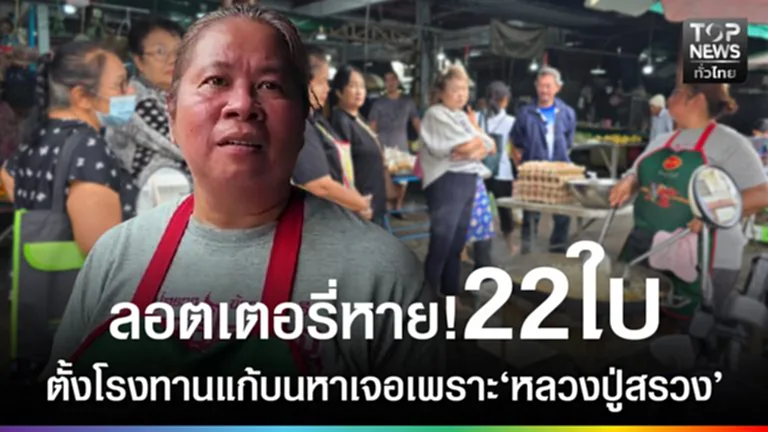 เมื่อเช้าวันที่ 1 พฤศจิกายน 2568 ผู้สื่อข่าวรายงานว่า ที่บริเวณด้านหน้าตลาดสดเทศบาลเมืองสุรินทร์ นางสาวอรอนงค์ เฉื่อยฉ่ำ อายุ 51 ปี ได้จัดตั้งโรงทานหอยทอด แจกจ่ายให้พี่น้องประชาชนที่มาจับจ่าย ซื้อสินค้าภายในตลาด เพื่อเป็นการแก้บน หลังจากได้ทำล็อตเตอรี่ที่ซื้อไว้จำนวน 22 ใบ หาย โดยใช้เวลาหากว่า 3 ชั่วโมงก็ไม่เจอ สุดท้าย ยกมือไหว้เหรียญหลวงปู่สรวงบนหิ้งพระ วอนขอให้หาเจอจะทำโรงทานหอยทอดแจะ หลังจากนั้นก็หาเจอจริงๆในจุดที่เคยค้นหา วันนี้จึงตั้งใจมาประกอบโรงทานหอยทอดอย่างที่ตั้งใจไว้กว่า 200 ถ้วย