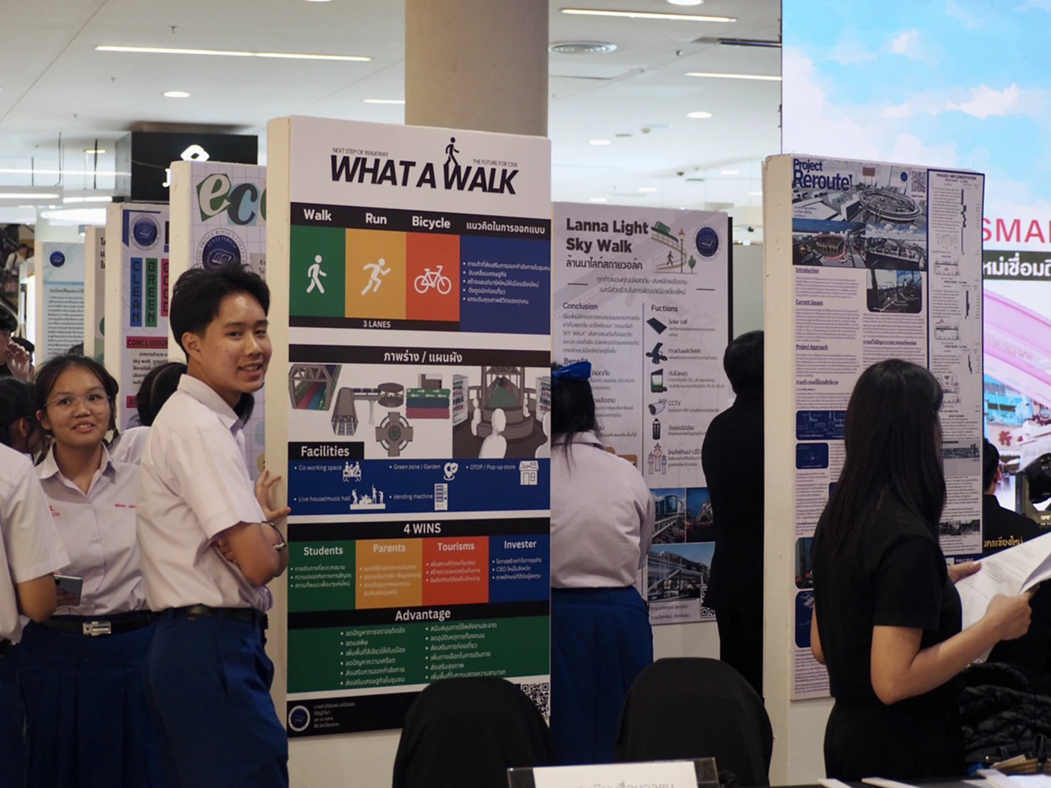 ภายในงานพบกับ นิทรรศการผลงานของนักเรียน จำนวน 20 ทีม ที่ร่วมส่งผลงานแนวคิด “ออกแบบทางเดินเชื่อมเมือง” เพื่อพัฒนาเมืองเชียงใหม่ให้ปลอดภัย เข้าถึงได้ และเป็นมิตรต่อสิ่งแวดล้อม รวมทั้งมี การนำเสนอผลงานรอบชิงชนะเลิศ (Final Presentation) จาก 4 ทีมสุดท้ายที่ผ่านการคัดเลือกจากผลงานทั้งหมดกว่า 20 ทีม