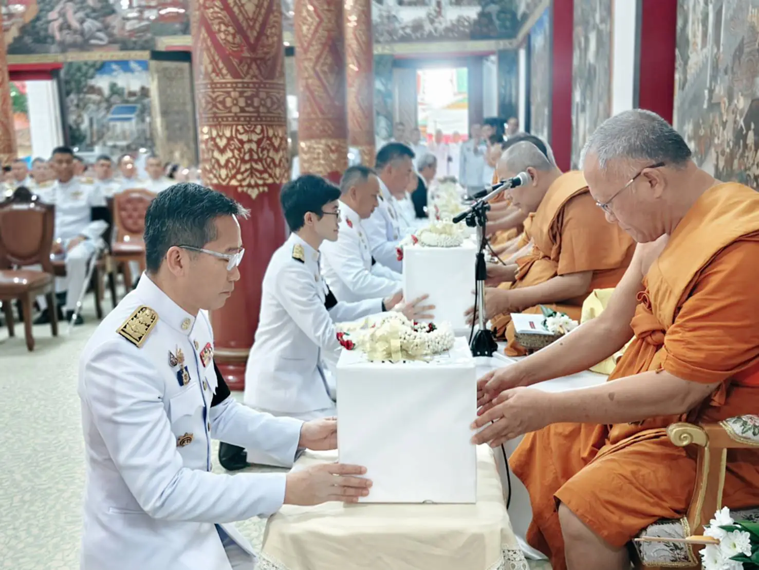 เมื่อวันที่ 1 พฤศจิกายน 2568 เวลา 14.00 น. ที่วัดบุญวาทย์วิหาร พระอารามหลวง อำเภอเมืองลำปาง จังหวัดลำปาง พลตำรวจตรี ภูมิปัญญ์ญา นวตระกูลพิสุทธิ์ ผู้บังคับการตำรวจภูธรจังหวัดลำปาง เป็นประธานในพิธีน้อมนำผ้าพระกฐินพระราชทานไปถวายพระสงฆ์