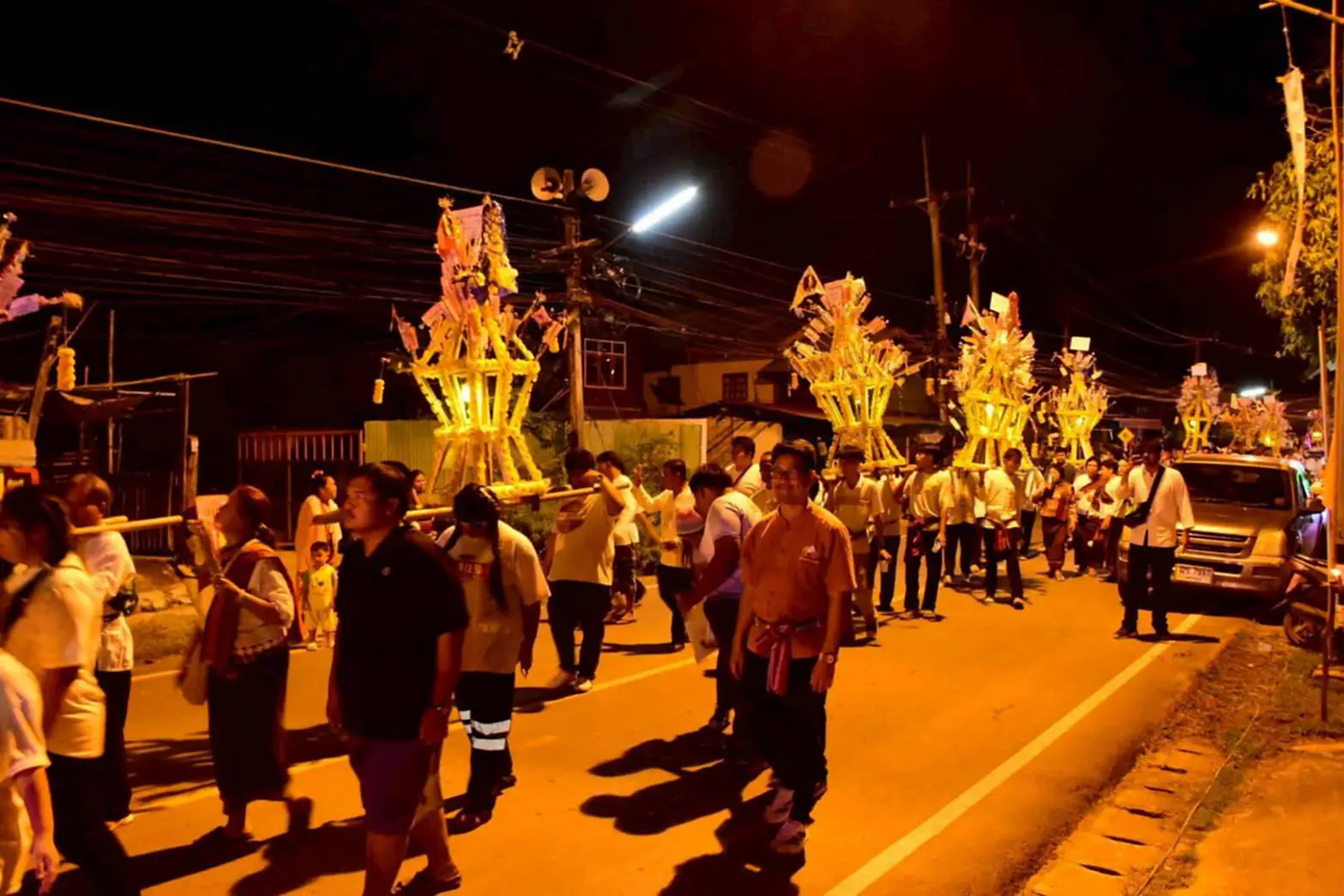 “เพชรบูรณ์” สืบฮีตสานฮอย วัฒนธรรมไทหล่ม แห่ต้นปราสาทผึ้ง ลอยประทีปไหลเรือไฟ คึกคัก
