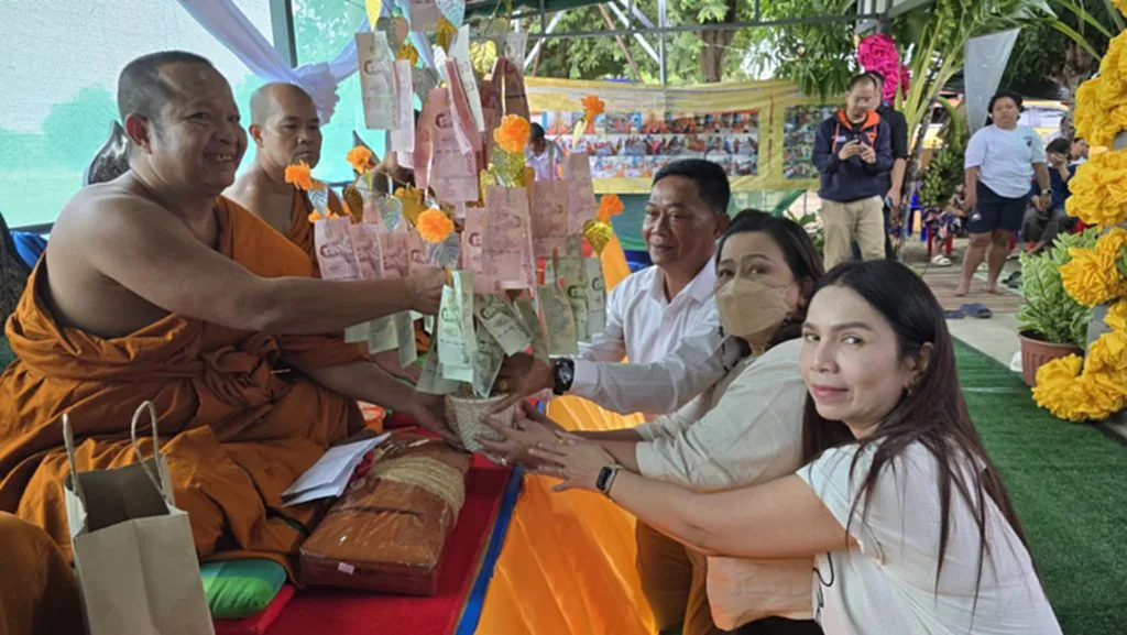 โดยมีพระครูพนมวนาภิวัฒน์ ที่ปรึกษาเจ้าคณะตำบลบ้านโพธิ์–ตลาด เป็นประธานฝ่ายสงฆ์ และนายสนอง ไขโพธิ์ นายกเทศมนตรีตำบลตลาด เป็นประธานฝ่ายฆราวาส ภายในงานมีแขกผู้มีเกียรติจากหลายหน่วยงานเข้าร่วม อาทิ นายฉัตร สุภัทรวณิชย์ สมาชิกสภาผู้แทนราษฎร เขต 1 จังหวัดนครราชสีมา นายปิยชาติ รุจิพรวศิน สมาชิกสภาผู้แทนราษฎร เขต 2 จังหวัดนครราชสีมา และนางฐิติรัตน์ ชุดทะเล ผู้อำนวยการส่วนบริหารงานพัสดุ สำนักคลัง องค์การบริหารส่วนจังหวัดนครราชสีมา