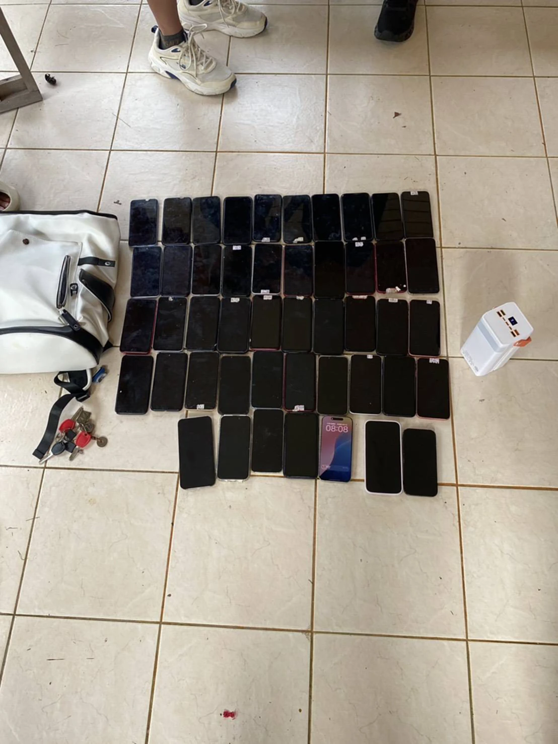 อย่างไรก็ตาม ชุดจับกุมได้ระบุว่า ในโทรศัพท์ที่ยึดได้มีเเอพสมัครงาน แอพการพนันออนไลน์ รวมทั้งแอพฟอกเงิน และแอพอื่นๆที่น่าจะเป็นแอพที่ใช้หลอกลวงต่างๆ นอกจากนี้ บางเครื่องถูกลบบางส่วนออกไป เชื่อว่าน่าจะลบเพื่อลบหลักฐานบางประการ