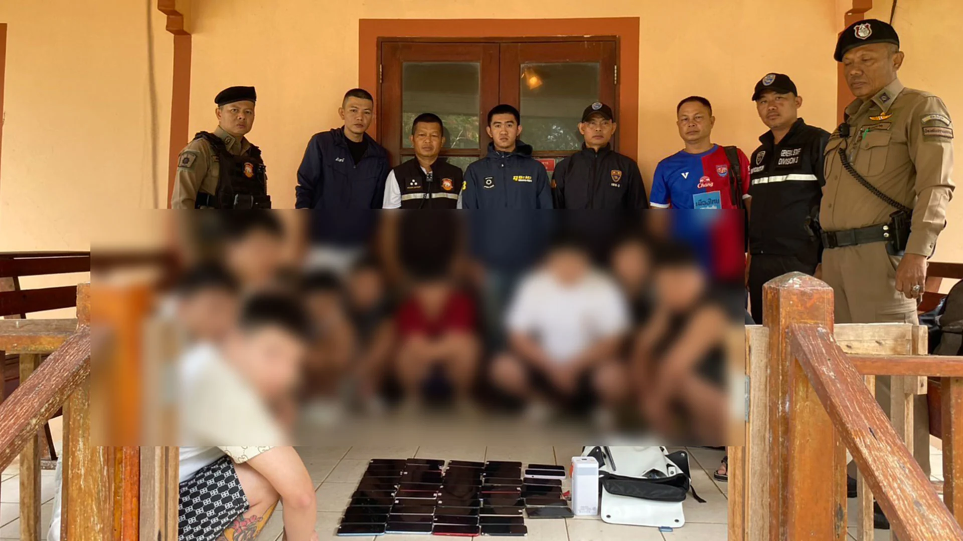 ชุดจับกุมให้ข้อมูลว่า ได้รับแจ้งจากเจ้าของรีสอร์ท ชื่อหาดบานชื่นบีช โดยคนดูแลชื่อสมใจ ไม่ทราบนามสกุล ว่ามีกลุ่มคนจีนมาพักอาศัยอยู่จึงไดีเดินทางเข้าไปไปตรวจสอบพบคนจีน 9 คนพักอยู่ในห้องพักใหญ่ มี 2 ห้องนอน ทุกคนเป็นชายทั้งหมด และไม่มีพาสปอร์ต หลังตรวจค้นภายในห้องที่รก และมีอาหาร ขนม กองอยู่จำนวนหนึ่ง และมีกลิ่นบุหรี่เหม็นเต็มทั้งสองห้อง และยังพบโทรศัพท์มือถือ จำนวน 48 เครื่อง