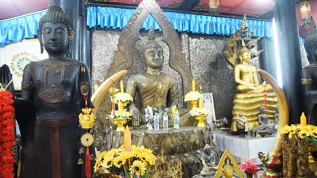 สำหรับวัดลาดขาม ตั้งอยู่พื้นที่ ต.พนมทวน อ.พนมทวน จ.กาญจนบุรี เป็นวัดเก่าแก่ที่สร้างขึ้นสมัยอยุธยาตอนต้น สถานที่แห่งนี้เป็นที่ประดิษฐานพระพุทธเบญจนวมงคลกาญจน์ เป็นพระพุทธรูปปางพิชิตมาร ความกว้่าง59 นิ้ว สูง87 นิ้ว เป็นพระพุทธรูปที่มีชื่อเสียงเรื่องความศักดิ์สิทธิ์และความมหัศจรรย์ ด้วยเป็นองค์ที่สร้างขึ้นมาจากเหรียญเงินตราต่างๆกว่า 9 แสนเหรียญที่ถูกนำมาเรียงต่อกันอย่างละเอียด จนกลายเป็นพระพุทธรูปองค์ใหญ่ที่มีความงดงามน่าทึ่ง หรือชาวบ้านต่างเรียกติดปากกว่า หลวงพ่อแสนเหรียญ กล่าวกันว่า หากกราบไหว้อธิฐานขอพรจะเกิดมงคลเหมือนได้ขอพรโชคลาภให้เกิดความร่ำรวยมั่งคั่ง นอกจากน้ันภายในวัดยังขุดค้นพบซากวัตถุโบราณ ซากปรังหักพังของเจดีย์เก่าแก่อีกจำนวนมากอีกด้วย