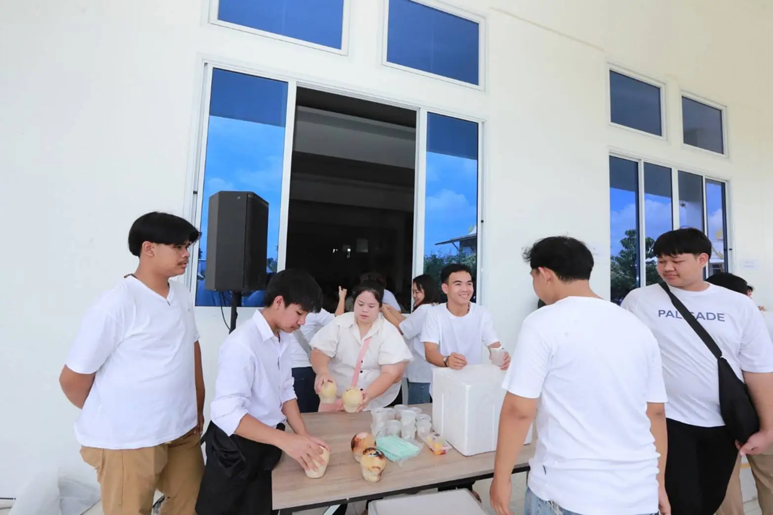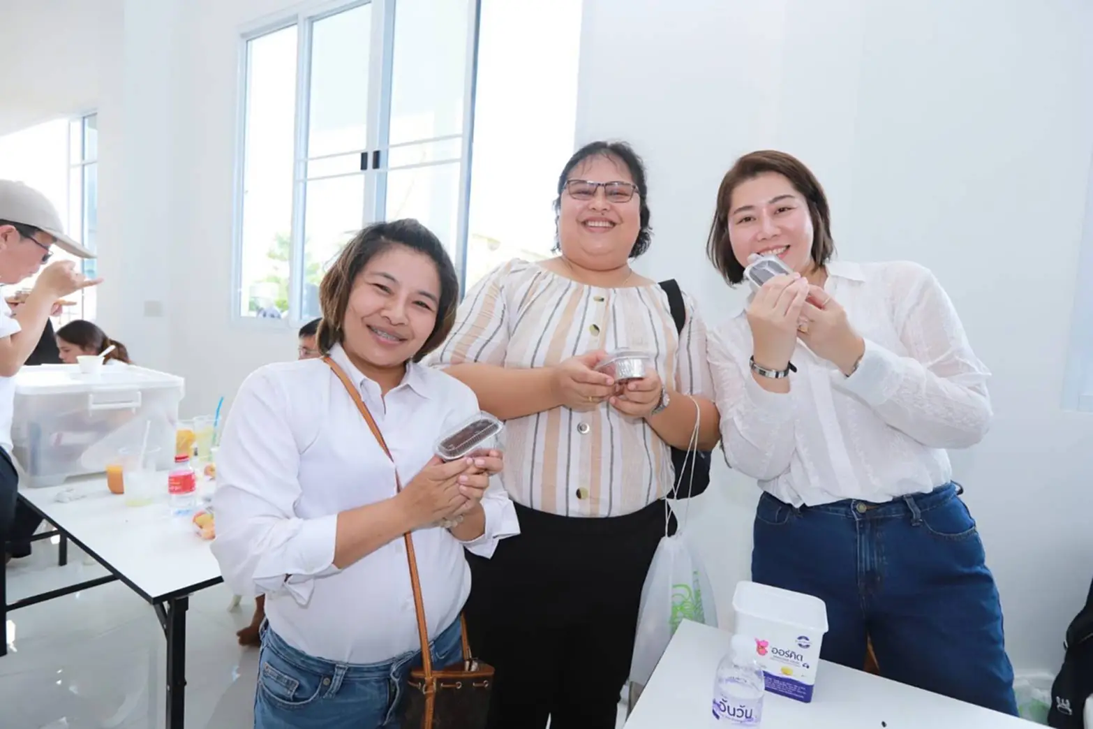 โดยได้นำผลไม้ น้ำมะพร้าว วุ้นมะพร้าว ของวิทยาลัยเทคนิคฉะเชิงเทรา และเค้กช็อกโกแลตจากวิทยาลัยบริหารธุรกิจและการท่องเที่ยวกรุงเทพ นำโดย รองกุลิสรา สุวรรณ รองผู้อำนวยการวิทยาลัยฯ