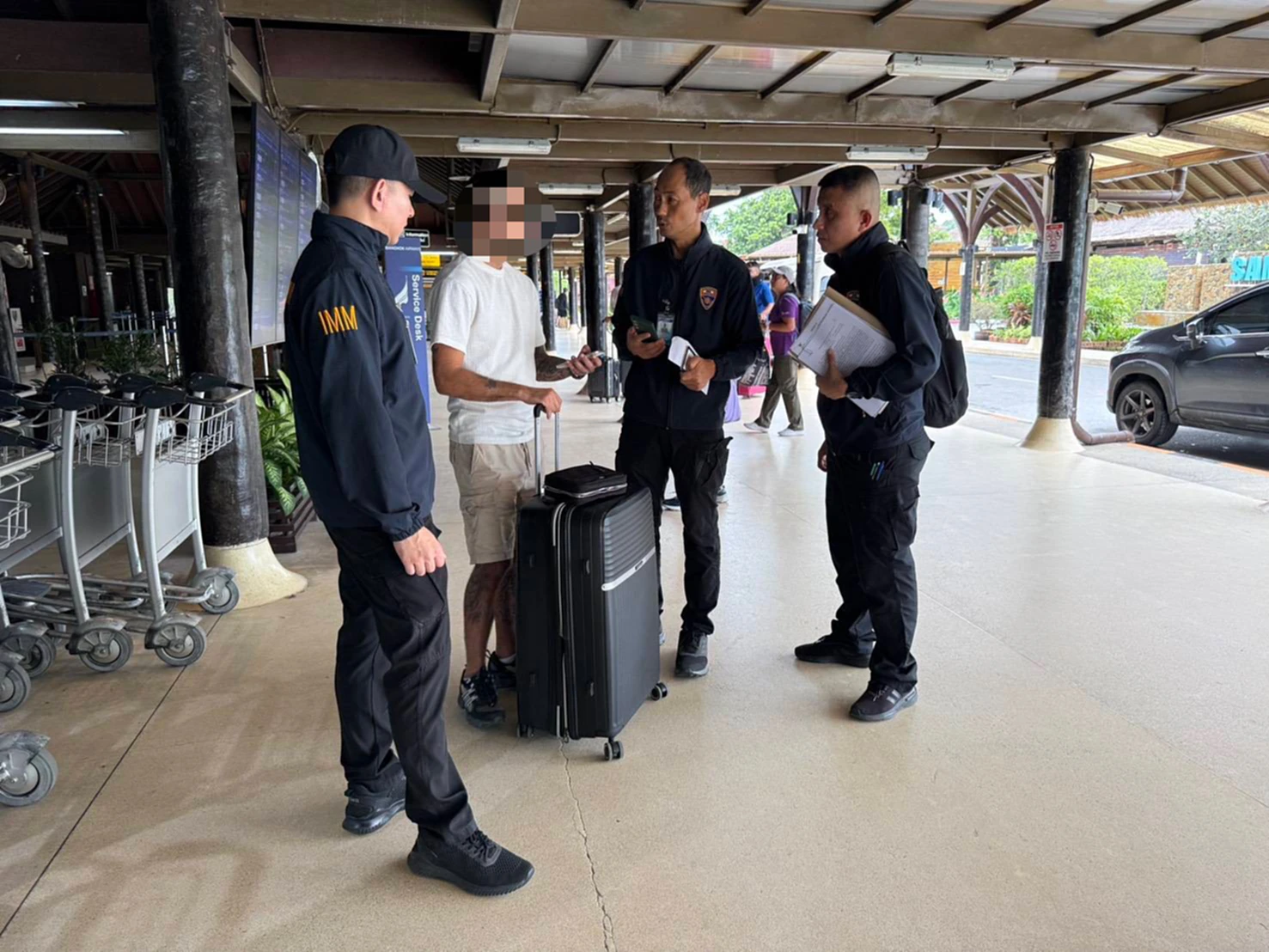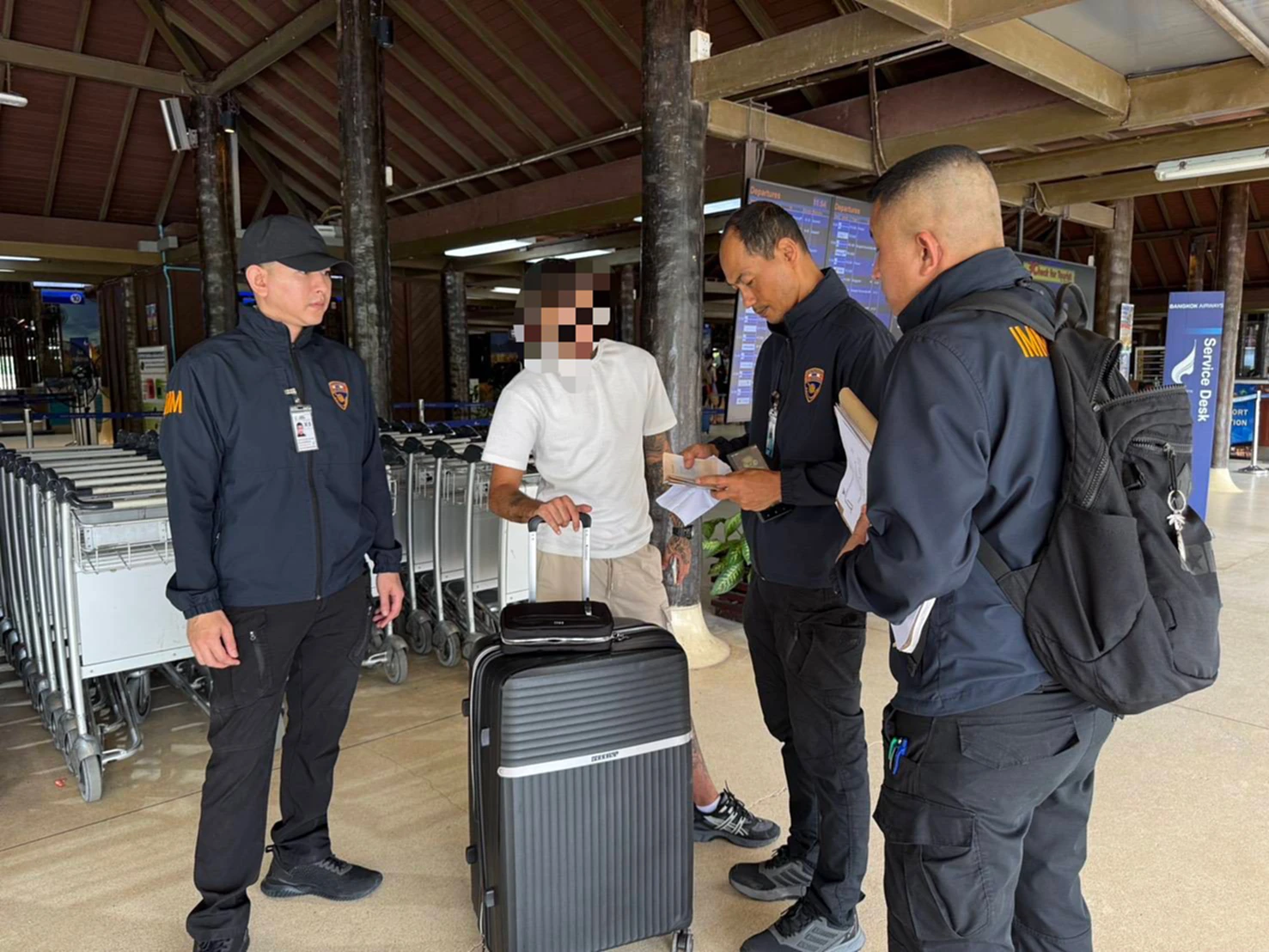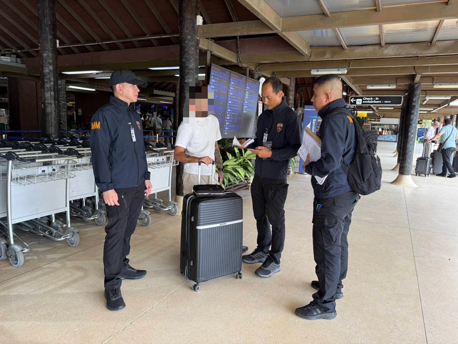 จากนั้น เจ้าหน้าที่สืบสวน ตม.จว.สุราษฎร์ธานี และ เจ้าหน้าที่ กก.สส.ภ.จว.สุราษฎร์ธานี ได้รับสั่งการจากผู้บังคับบัญชาให้บูรณาการกำลังออกตรวจสอบติดตามตัว จากการตรวจสอบข้อมูลจากระบบสารสนเทศของสำนักงานตรวจคนเข้าเมือง พบว่านายโอ แจ้งการเข้าพักไว้ที่โรงแรมแห่งหนึ่งในพื้นที่ ต.บ่อผุด อ.เกาะสมุย จว.สุราษฎร์ธานี แต่จากการเข้าไปตรวจสอบไม่พบตัว พักอยู่ที่โรงแรมดังกล่าว จึงได้สืบสวนเพิ่มเติมจนทราบข้อมูลว่าเมื่อวันที่ 27 ต.ค. 2568 นายโอ ได้จองตั๋วเครื่องบินเตรียมตัวจะเดินทางหลบหนีออกนอกประเทศ ผ่านทางสนามบินนานาชาติสมุย ในวันที่ 2 พ.ย.68 ทางเจ้าหน้าที่ จึงได้วางแผนติดตามตัว จนกระทั่งในวันที่ 2 พ.ย. 2568 จึงได้วางกำลังในพื้นที่สนามบิน จนกระทั่งพบตัว นายโอ กำลังลงจากรถแท็กซี่เดินเข้ามาภายในอาคารผู้โดยสารสนามบินนานาชาติสมุย เจ้าหน้าที่จึงได้เข้าแสดงตัว และ ตรวจสอบเอกสารหนังสือเดินทาง จากนั้นจึงได้แจ้งคำสั่งเพิกถอนการอนุญาตให้อยู่ในราชอาณาจักรและแจ้งคำสั่งควบคุมตัวเพื่อดำเนินการตามผลักดันส่งกลับตามกฎหมายคนเข้าเมือง ให้แก่นายโอ ทราบ และ ควบคุมตัวไว้เพื่อผลักดันส่งกลับไปดำเนินคดีที่ประเทศต้นทางต่อไป ทั้งนี้ ผบช.สตม.และ ผบก.ตม.6 ได้มีนโยบายให้ ตม.จว.สุราษฎร์ธานี กวดขันคนต่างชาติที่อยู่ในพื้นที่ ให้ปฏิบัติตามกฎหมาย เคารพวัฒนธรรมท้องถิ่น ยอมรับการอยู่ในสังคมร่วมกับคนไทย และให้จับกุมคนต่างชาติ ที่กระทำความผิดทั้งในประเทศและผู้ที่หลบหนีการกระทำความผิดมากบดานในพื้นที่ หากท่านพบเห็นการกระทำความผิดของคนต่างชาติในพื้นที่ สามารถแจ้งได้ที่ สายด่วน 1178 หรือ ตม.จว.สุราษฎร์ธานี ที่เว็ปไซด์ WWW.SURATTANIIMMIGRATION.GO.TH หรือหมายเลขโทรศัพท์ 077-423440