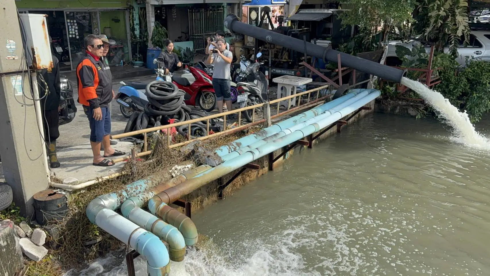 ผู้สื่อข่าวรายงานว่า ชาวบ้านพักอาศัยอยู่บริเวณคลองสามอำเภอคลองหลวงจังหวัดปทุมธานีได้รับความเดือดร้อนอย่างหนักหลังฝนตกหนักเมื่อช่วงคืนที่ผ่านมา ส่งผลทำให้เกิดน้ำท่วมขัง ระดับน้ำท่วมสูง 10-50 ซม. ซึ่งพบว่าโครงการหมู่บ้านของแต่ละหมู่บ้านได้เร่งนำเครื่องสูบน้ำสูบเร่งระบายลงคลองสาม แต่พบว่าระดับน้ำในคลองสูงเทียบเท่าระดับน้ำของแต่ละหมู่บ้านการระบายน้ำจึงเป็น ไปได้ยาก
