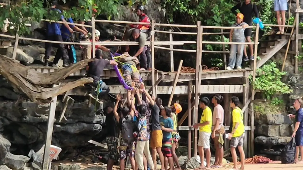 ผู้บาดเจ็บทราบชื่อคือ Mr. Damon Mathew Monjure อายุ 50 ปี สัญชาติอเมริกัน โดยก่อนเกิดเหตุ พนักงานขายทัวร์ในพื้นที่เผยว่า เห็นนักท่องเที่ยวรายนี้พยายามปีนเขาแม้ถูกเตือนถึงความอันตราย ก่อนจะพลัดตกลงมาจากหน้าผา เจ้าหน้าที่กู้ภัยใช้เวลานานกว่า 4 ชั่วโมงในการเดินเท้าฝ่าป่าทึบและทางชันเพื่อนำตัวลงมาได้สำเร็จในเวลา 14.41 น. จากนั้นรีบนำส่งโรงพยาบาลกระบี่
