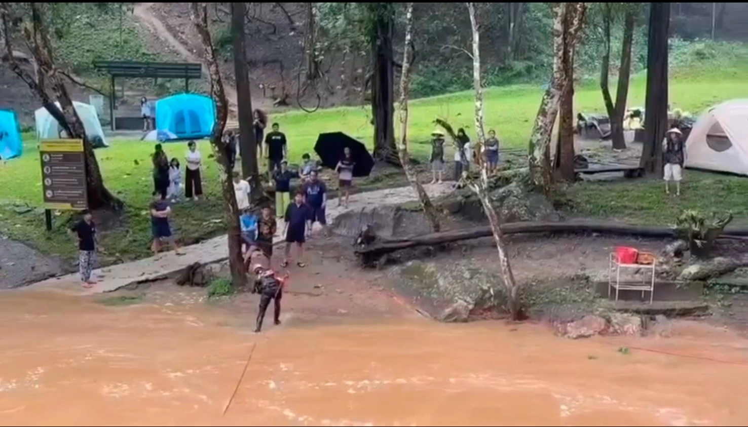 ต่อมามีรายงานเบื้องต้น ระบุว่า มีนักท่องเที่ยวประมาณกว่า 20 คน ติดค้างอยู่บริเวณอีกฝั่งของน้ำตก ไม่สามารถข้ามกลับได้ ขณะนี้เจ้าหน้าที่อุทยานฯ ร่วมกับทีมกู้ภัยทางสูงแห่งประเทศไทย ได้ระดมกำลังเข้าพื้นที่เพื่อให้การช่วยเหลืออย่างเร่งด่วน โดยอยู่ระหว่างประเมินสถานการณ์และจัดเตรียมอุปกรณ์สำหรับการเข้าถึงจุดเกิดเหตุ