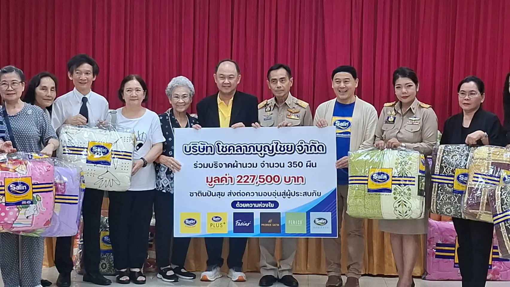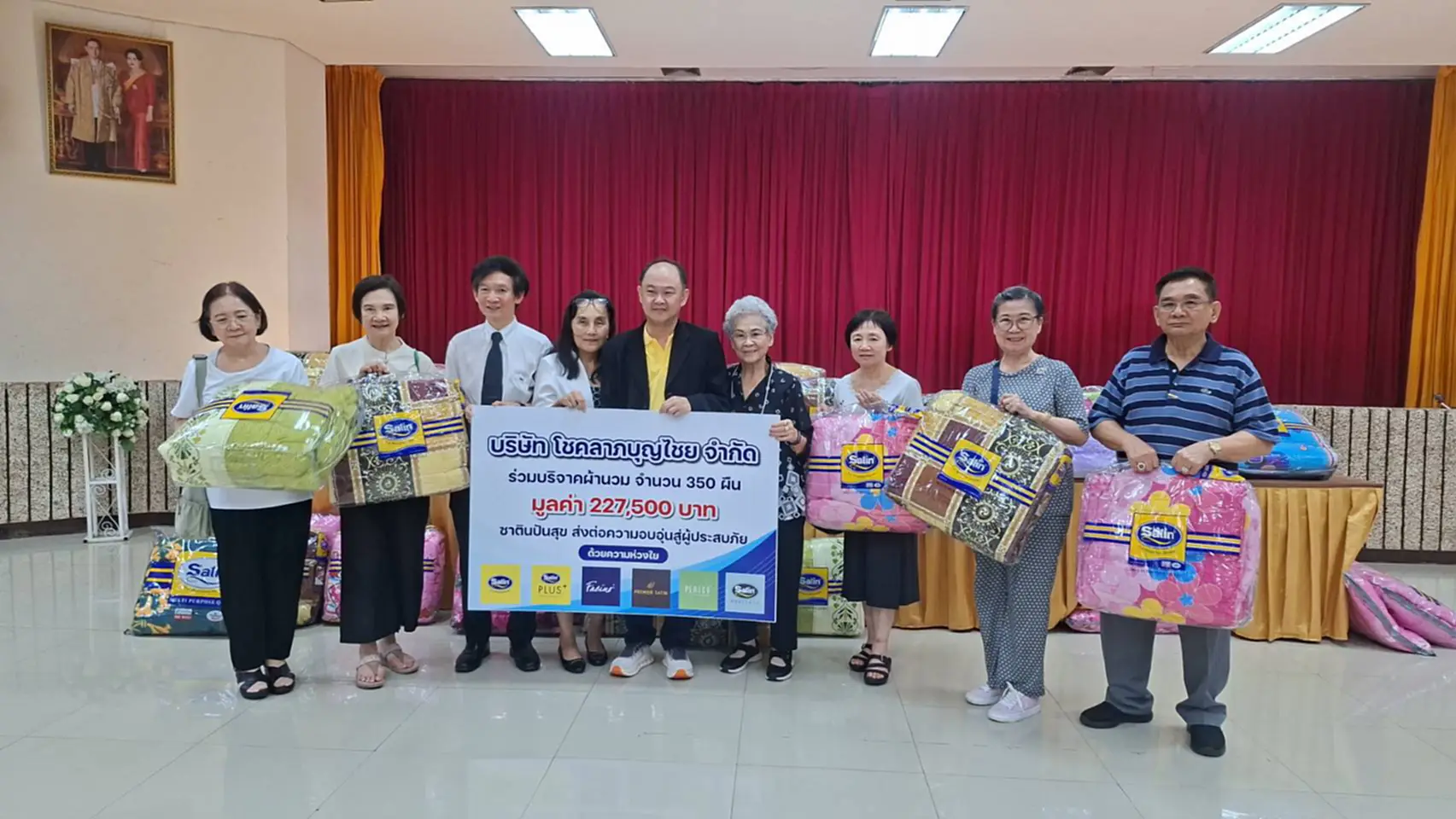 ซาตินปันสุข ส่งมอบผ้านวม 350 ผืน ช่วยเหลือผู้ประสบอุทกภัยจังหวัดอุตรดิตถ์