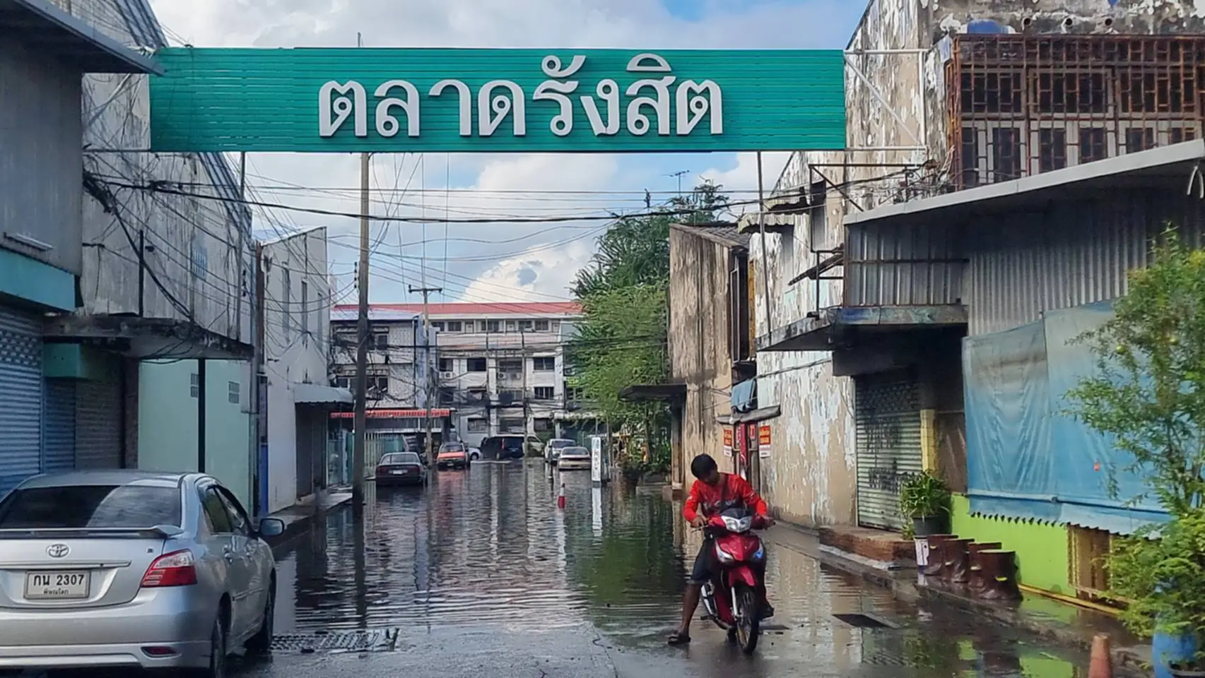 บรรยากาศที่ตลาดรังสิตยังมีน้ำท่วมขัง การสัญจรไปนานไม่ได้ ในขณะที่เจ้าหน้าที่กรมทางหลวงกำลังติดตั้งเครื่องสูบน้ำ เพื่อเร่งระบายน้ำบนพื้นผิวการจราจร ที่ท่วมขังบนถนน รวมทั้ง ตลาดรังสิต ในขณะที่ริมเขื่อนสะพานแดง ทางเจ้าหน้าที่เทศบาลนครรังสิต ตั้งเครื่องสูบน้ำเพื่อเร่งระบายน้ำในชุมชนริมเขื่อนสะพานแดง แต่ก็ยังมีน้ำท่วมขังบ้างเล็กน้อย ถ้าฝนไม่ตก ระดับน้ำ คาดว่าจะลดลงเป็นปกติ