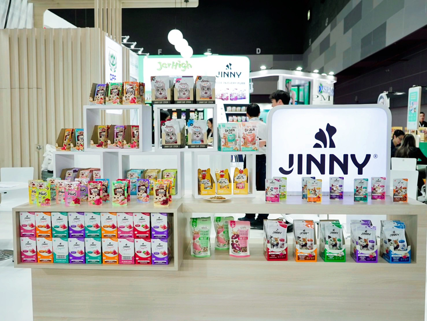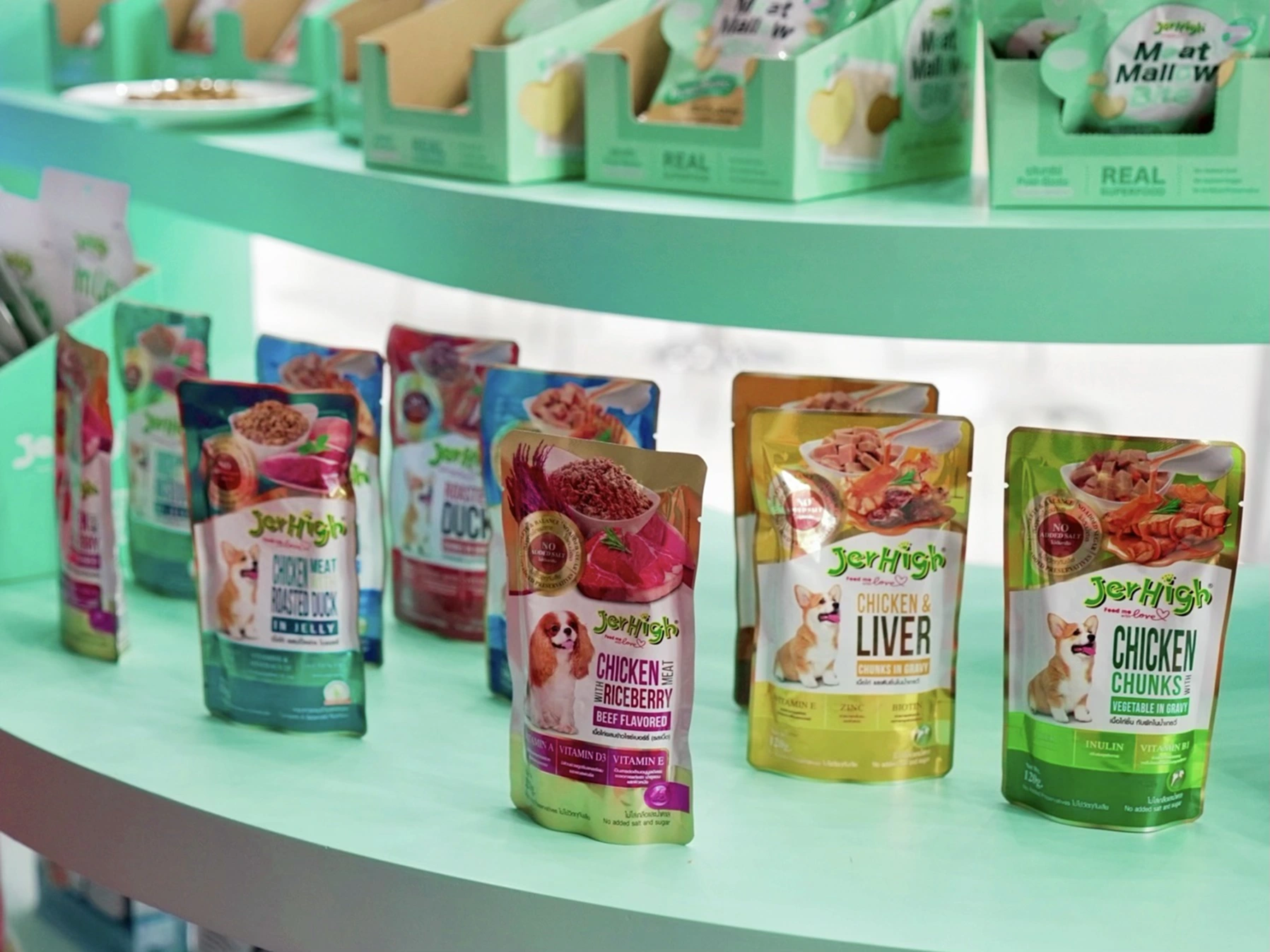 ไฮไลท์ผลิตภัณฑ์ใหม่ที่นำมาจัดแสดง ได้แก่ ‘เจอร์ไฮ ไทย เทสต์’ (JerHigh Thai Taste) ภายใต้แนวคิด “กลิ่นหอม รสชาติไทยแท้ สุนัขชอบ คนจำได้” สะท้อนเอกลักษณ์ความเป็นไทย มุ่งเจาะตลาดพรีเมียมในเอเชียและตะวันออกกลาง เตรียมเปิดตัวเชิงพาณิชย์ในไตรมาส 1 ปี 2569 และ ‘จินนี่ นูริช’ (Jinny Nourish) อาหารแมวเปียกเกรดซูเปอร์พรีเมียมแบบซองพัฒนาสูตรเฉพาะสำหรับแต่ละช่วงวัยของแมว โดยใช้ส่วนผสมจากปลาทูน่าธรรมชาติและเนื้อไก่สดคุณภาพสูง ปราศจากกลูเตนและข้าวสาลี ตอบสนองเทรนด์ “Functional Nutrition” โภชนาการเพื่อการดูแลสุขภาพเฉพาะด้านที่เติบโตอย่างรวดเร็วในตลาดโลก
