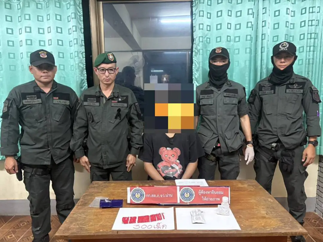 นปพ.น่าน รวบ “โก้ บ้านใหม่ดินแดน” พร้อมยาบ้า 300 เม็ด คาด่านห้วยน้ำอุ่น