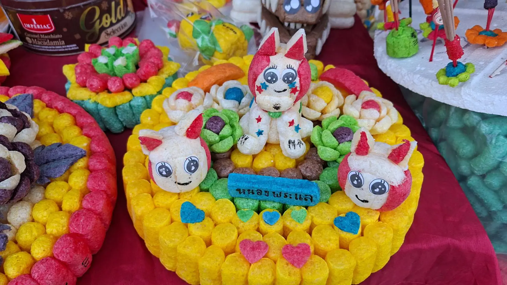 พ่อค้าแม่ค้าที่จำหน่ายอาหารปลาภายในสวนสาธารณะหนองพระแล กล่าวว่า ได้พากันทำกระทงจากข้าวโพดอาหารปลาติดต่อกันมาหลายปีแล้ว แต่ละปีก็จะสร้างสรรค์ คิดรูปแบบกระทงตามกระแสความนิยม ดึงดูดความสนใจให้ลูกค้าได้เลือกซื้อ ซึ่งในปีนี้ที่ได้ประดิษฐ์ทำกระทงขึ้นมามาก จะเป็นกระทงจระเข้ซาลาวัน เนื่องจากในปีที่ผ่านมาพบว่าลูกค้าและนักท่องเที่ยวจะมาซื้อกันมาก
