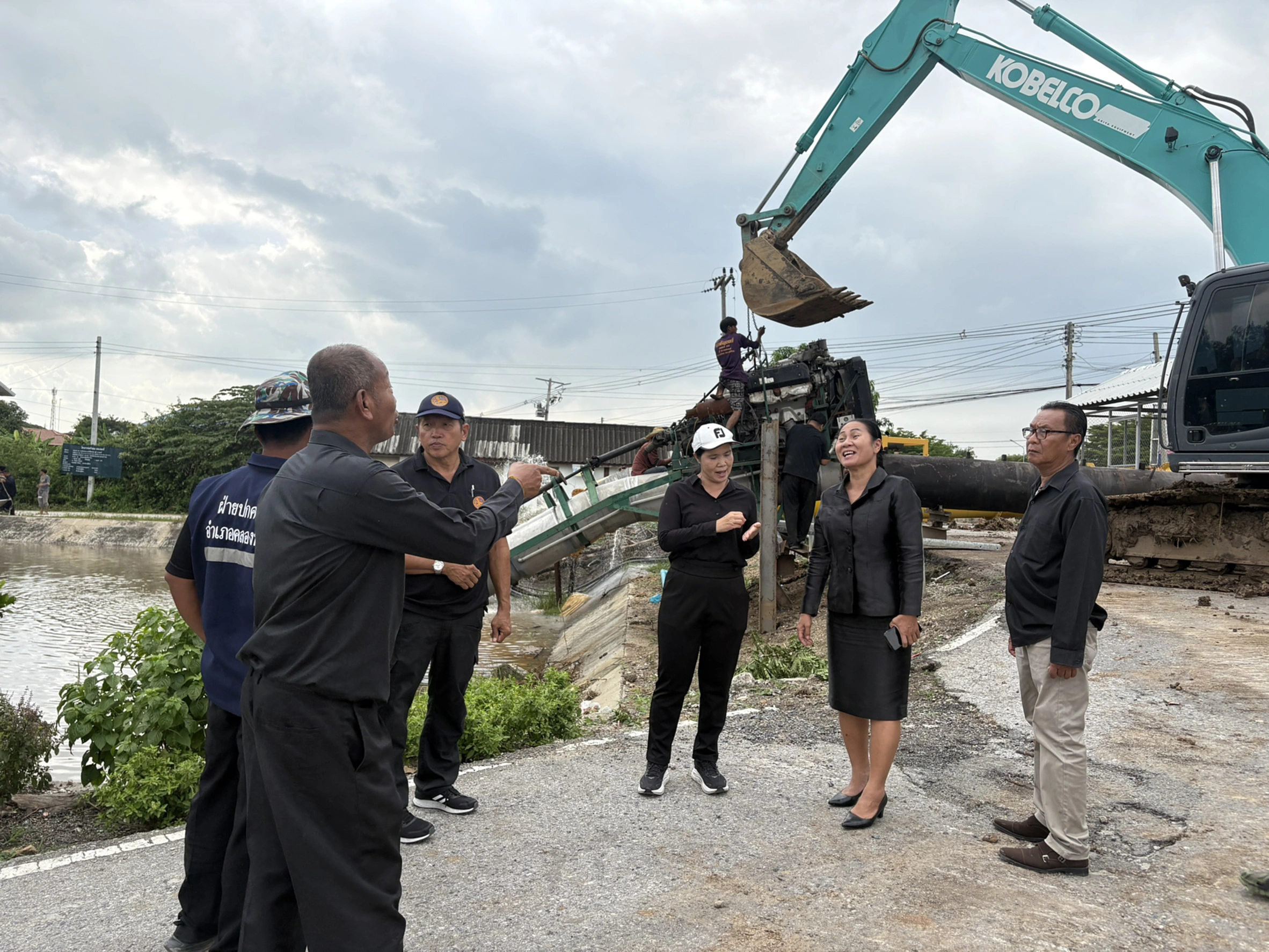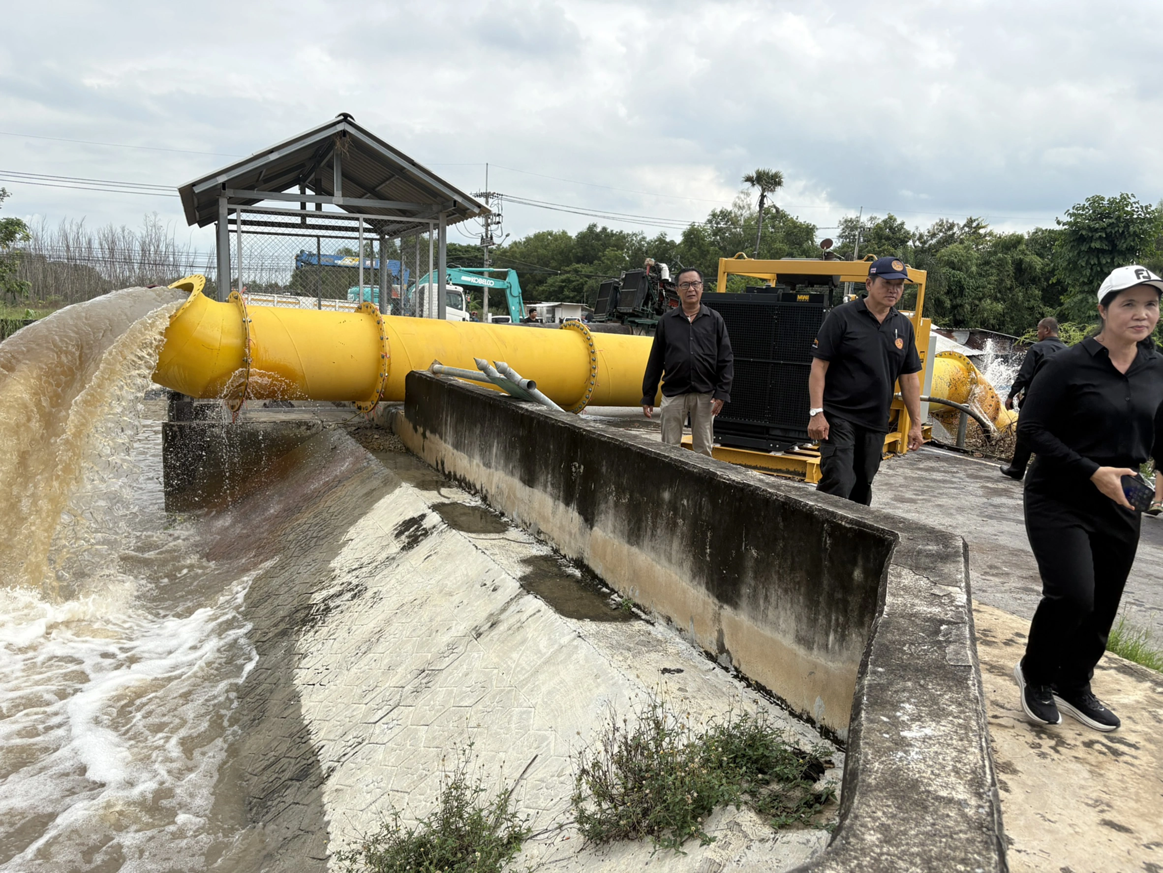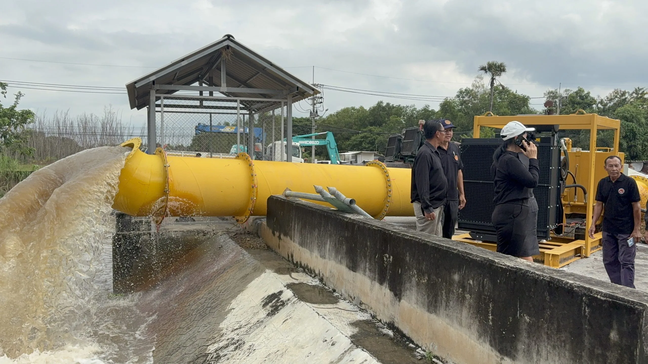 วันที่ 4 พฤศจิกายน 2568 ผู้สื่อข่าวรายงานว่า ที่ บริเวณประตูระบายน้ำฝั่งคลองระพีพัฒน์ หมู่ 16 ตำบลคลองสี่ อำเภอคลองหลวง จังหวัดปทุมธานี นางประเทือง วงษ์แจ้ง นายกอบต. คลองสี่ พร้อมด้วย นางอรอนงค์ สมสวย ปลัด เจ้าหน้าที่อบต. คลองสี่ ,นายเชาว์ ใจภักดี กำนันตำบลคลองสี่ เร่งนำเครื่องสูบน้ำขนาดใหญ่มาติดตั้งเพิ่ม กับเครื่องสูบน้ำของกรมชลประทาน