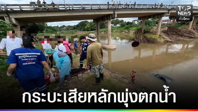 หนุ่มใหญ่ขับกระบะพุ่งตกน้ำใต้สะพานบ้านหัวเวียงเหนือ กู้ภัยเร่งนำส่ง รพ.น่าน