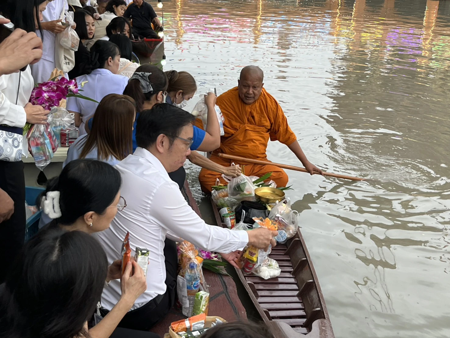 ผู้สื่อข่าวรายงานว่า วันที่ 5 พฤศจิกายน 2568 เวลา 07.00 น. ที่บริเวณสระกลางน้ำวิหารหลวงปู่กิ่ม วัดบางพลีใหญ่กลาง ต.บางพลีใหญ่ อ.บางพลี จ.สมุทรปราการ พระวชิรคณาทร (เจ้าคุณแจ้) เจ้าอาวาสวัดบางพลีใหญ่กลาง พร้อมด้วย พระมหาเสน่ห์ และพระเดช พระสงฆ์วัดบางพลีใหญ่กลาง เมตตาพายเรือโปรดญาติโยมรับบิณฑบาตทางน้ำ เนื่องในงานประเพณีลอยกระทง ประจำปี 2568 โดยมี ดร.วีร์สุดา รุ่งเรือง นายก อบต.บางพลีใหญ่ พ.ต.อ.กรวัฒน์ หันประดิษฐ์ อดีตรอง ผบก.ภ.จว.ชลบุรี นางเจียม รุ่งเรือง อดีตสมาชิกสภา อบจ.สมุทรปราการ ตลอดจนคณะไวยาวักจร หัวหน้าส่วนราชการ