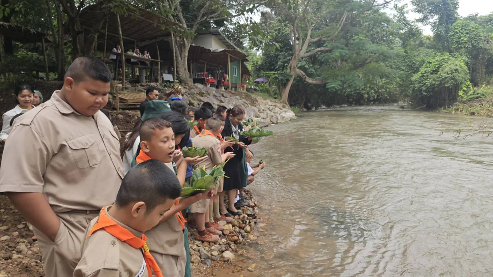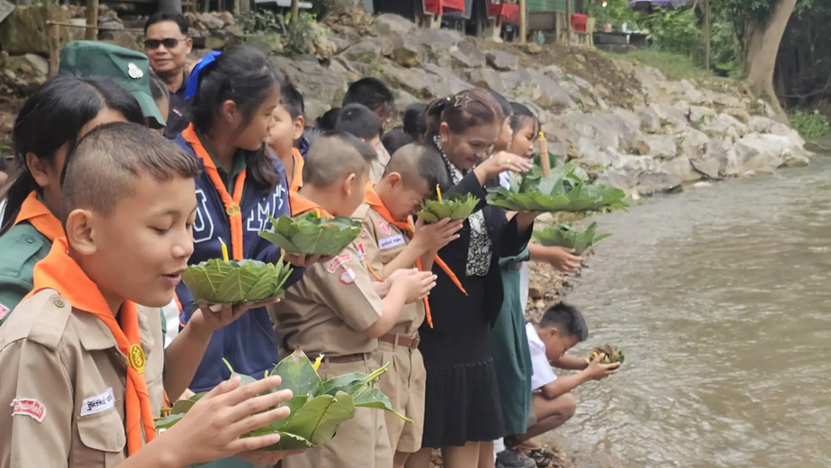 วันที่ 5 พฤศจิกายน 2568 ที่ท่าน้ำบ้านท่ามะปรางค์-คลองเพล ต.หมูสี อ.ปากช่อง จ.นครราชสีมา นายสมหมาย ประเสริฐสงค์ ประธานกลุ่มวิสาหกิจชุมชนท่องเที่ยวบ้านท่ามะปรางค์-คลองเพล /ผู้ใหญ่บ้านท่ามะปรางค์ พร้อมทีมงานนำเด็กนักเรียน โรงเรียนบ้านปรางค์คล้า ร่วมกันจัดงานสืบสานประเพณีไทย งานลอยกระทง ประจำปี 2568 วันที่ 5 พฤศจิกายน