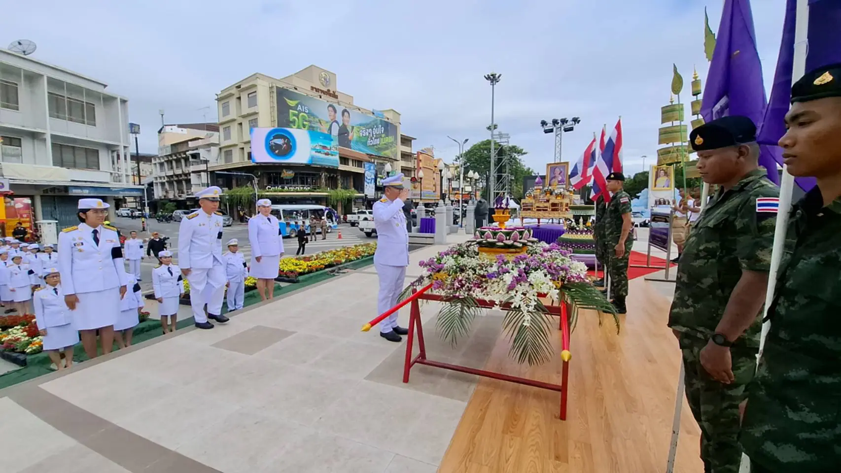 วันนี้ (5 พ.ย.68) ที่บริเวณลานอนุสาวรีย์ท้าวสุรนารี อ.เมืองนครราชสีมา จ.นครราชสีมา นายกิตติศักดิ์ ธีระวัฒนา รองผู้ว่าราชการจังหวัดนครราชสีมา เป็นประธานประกอบพิธีอัญเชิญพระประทีปพระราชทาน สมเด็จพระกนิษฐาธิราชเจ้า กรมสมเด็จพระเทพรัตนราชสุดาฯ สยามบรมราชกุมารี ทรงพระราชทาน มายังเทศบาลตำบลหัวทะเล เพื่อนำลอยเป็นปฐมฤกษ์ ที่บึงหัวทะเล ในงานลอยกระทงพระประทีปพระราชทาน ตามโครงการเทศกาลลอยกระทง โคมไฟ68 @ บึงหัวทะเล โดยอัญเชิญแห่ลอดซุ้มประตูชุมพล ก่อนนำลอยเป็นปฐมฤกษ์ในงานประเพณีลอยกระทงพระประทีปพระราชทาน เทศกาลโคมไฟ ประจำปี 2568 ณ บึงหัวทะเล โดยจัดขบวนแห่อัญเชิญพระบรมฉายาลักษณ์ฯ พร้อมอัญเชิญกระทงเครื่องทองน้อย และกระทงพระประทีปฯ ขึ้นขบวนรถที่ประดับประดาดอกไม้อย่างสวยงาม โดยมีวงดุริยางค์จาก รร.บุญวัฒนา ส่วนข้าราชการ และสาวงามแต่งกายชุดไทยผ้าไหมพื้นบ้านสีม่วง ร่วมขบวนแห่ลอดซุ้มประตูชุมพล และแห่ไปรอบตัวเมือง