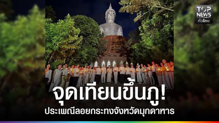 มุกดาหาร จุดเทียนขึ้นภูบูชาพระใหญ่ เนื่องในงานประเพณีลอยกระทงบูชาพระแม่คงคา