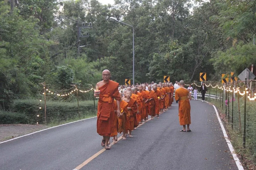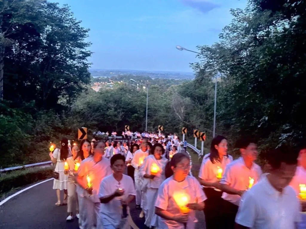 จังหวัดมุกดาหารจัดกิจกรรมจุดเทียนขึ้นภู วัดรอยพระพุทธบาทภูมโนรมย์ และพิธีเจริญพระพุทธมนต์ เนื่องในงานประเพณีลอยกระทงบูชาพระแม่คงคา