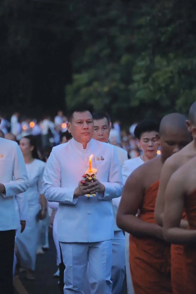 ภายหลังเสร็จสิ้นขบวนจุดเทียน ได้จัดพิธีเจริญพระพุทธมนต์เพื่อความเป็นสิริมงคลแก่ผู้เข้าร่วมงานและจังหวัดมุกดาหาร บรรยากาศโดยรวมเป็นไปอย่างสงบ สวยงาม และเปี่ยมด้วยศรัทธาในประเพณีลอยกระทงอันทรงคุณค่าทางวัฒนธรรมของชาวมุกดาหาร