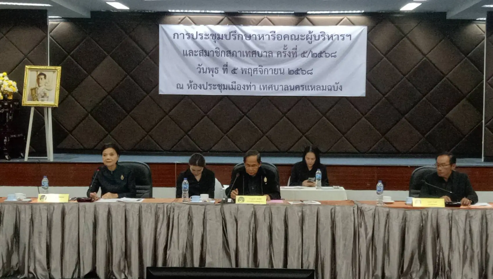 วันที่ (5 พฤศจิกายน 2568) ที่หัองประชุม เมืองท่า ชั้น 2 สำนักงานเทศบาลนครแหลมฉบัง จังหวัดชลบุรี นายบุญเลิศ น้อมศิลป์ ประธานที่ปรึกษาคณะผู้บริหารเทศบาลนครแหลมฉบัง เป็นประธานในการประชุมปรึกษาหารือคณะผู้บริหารเทศบาล และสมาชิกสภาเทศบาลนครแหลมฉบัง ครั้งที่ 5/2568 เพื่อนำหัวข้อราชการที่ต้องพิจารณาหารือร่วมกันเกี่ยวกับวิธีการบริหารจัดการบ้านเมืองที่ดี เพื่อประโยชน์สุขของประชาชนในพื้นที่เขตเทศบาลนครแหลมฉบัง มาปรับปรุงแก้ไข พัฒนาต่อไป โดยมี นายกจินดา ถนอมรอด นายกเทศมนตรีนครแหลมฉบัง รองนายกเทศมนตรี ที่ปรึกษา หัวหน้าส่วนราชการ และสมาชิกสภาเทศบาล เข้าร่วม ประชุมในครั้งนี้